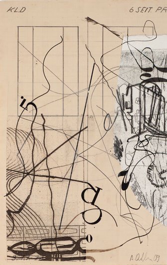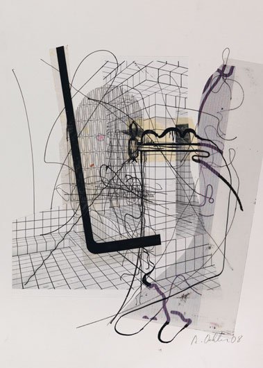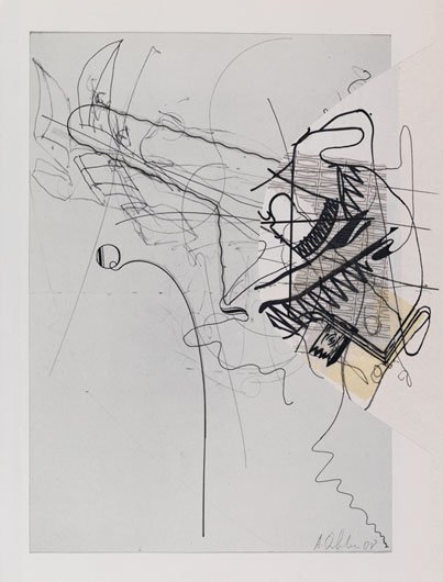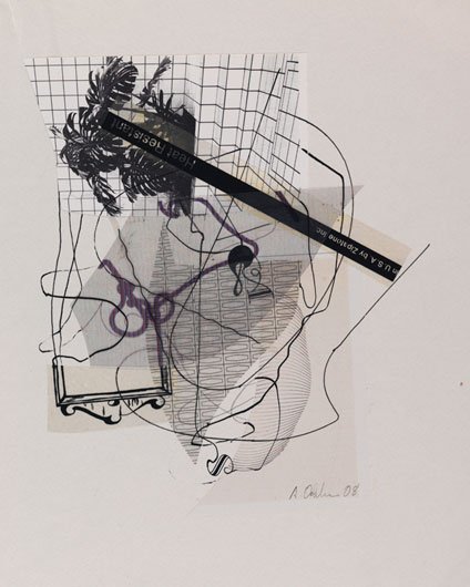Untitled 2009 ink, pencil, etching, and mixed media collage on found artwork 10 1/2 x 6 3/4 inches signed and dated lower right in pencil