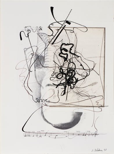 Untitled 2010 ink, pencil and mixed media collage on found paper 9 1/2 x 7 inches signed and dated lower right in ink