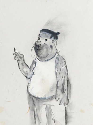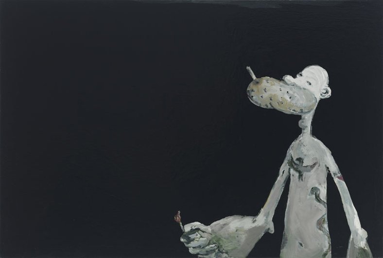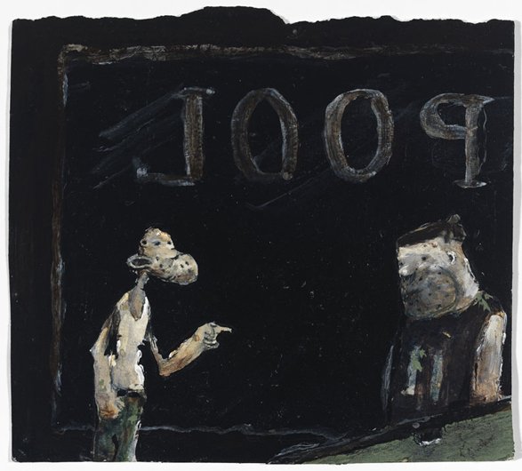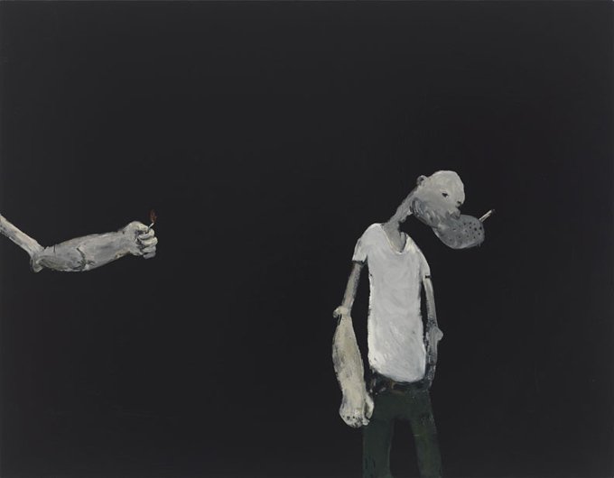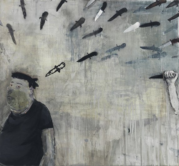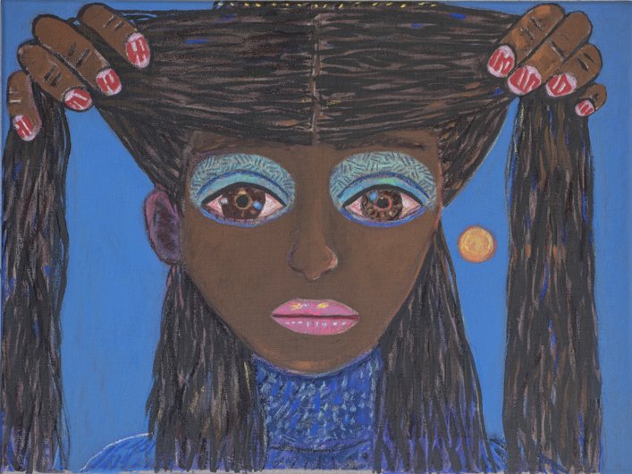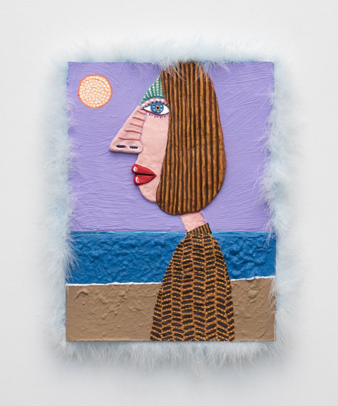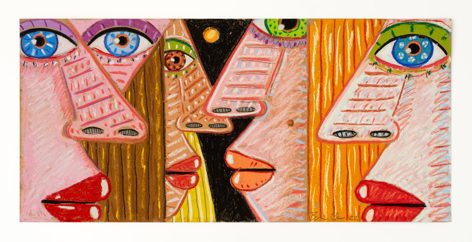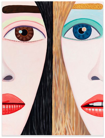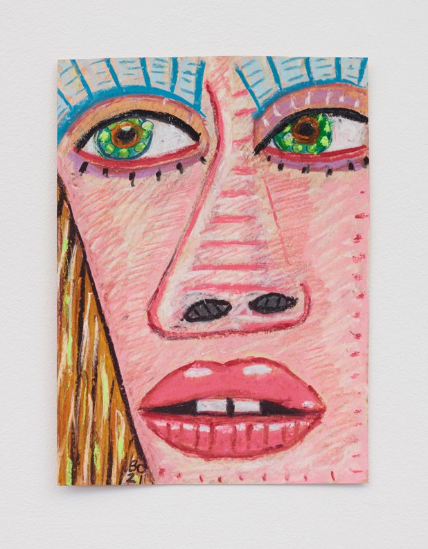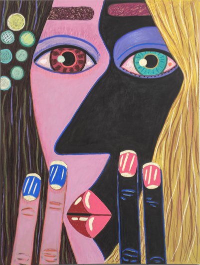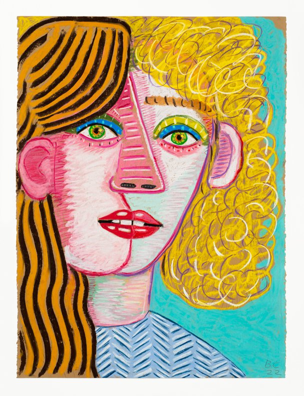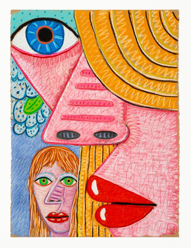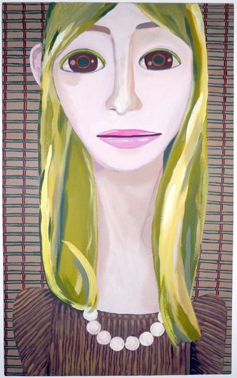 Calvin developed a figurative pictorial style with a close-up treatment of subjects, highly composed structures, and luminous colors lying flat. His technique is a type of abstraction in the representation of certain details. His portraits of bleary-eyed youth are painted featuring backgrounds that Calvin describes as “general” glimpses of the California coast.