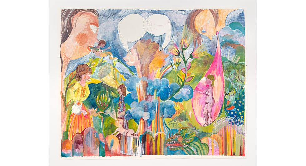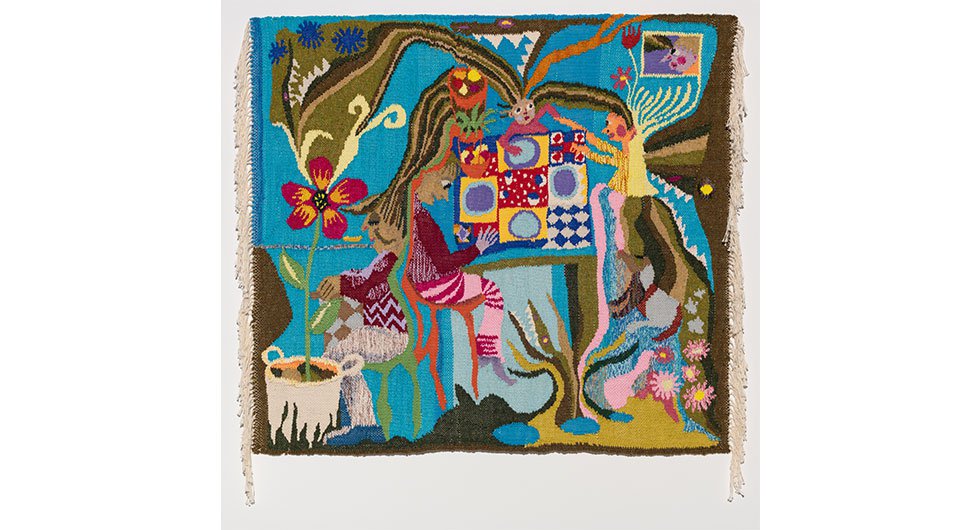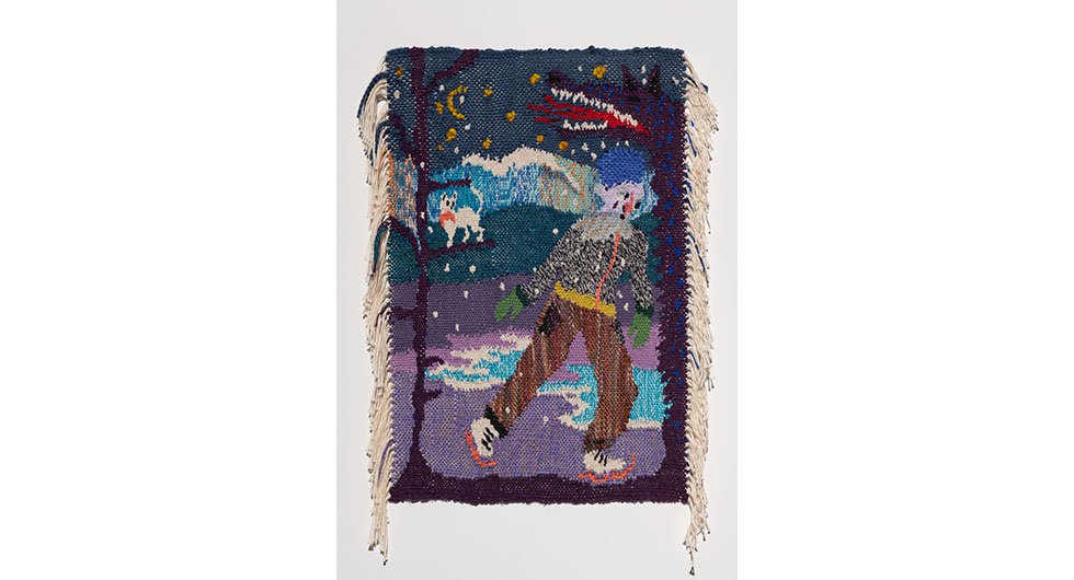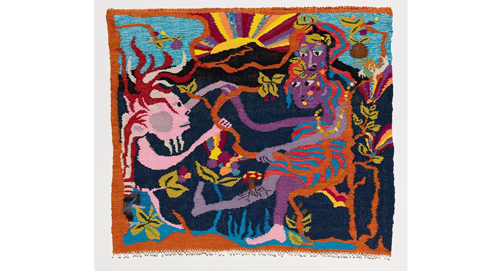 Born in Zürich, Switzerland, and based in Los Angeles, Forrer makes tapestries that are psychologically charged, but often by means of energetic interaction dynamics suspended in a fraught narrative. Brilliant, raucous, warm, and biting, they bring traditional Swiss textiles into a thoroughly contemporary comic context, inside jokes looming large in her brightly colored woven surfaces. Recent institutional exhibitions include Matrix 187 at the Wadsworth Atheneum, Hartford, CT (2021–2022), Christina Forrer: Feet of the Devil at Savannah College of Art and Design Museum of Art, Savannah, GA (2019–2020), Grappling Hold at the Swiss Institute, New York (2017) and Unorthodox at the Jewish Museum, New York (2015).