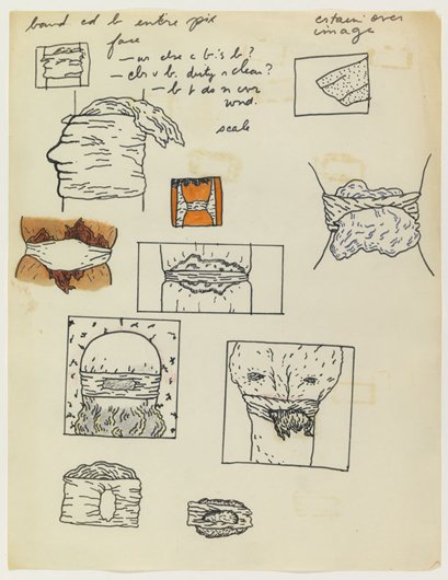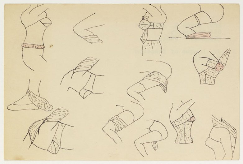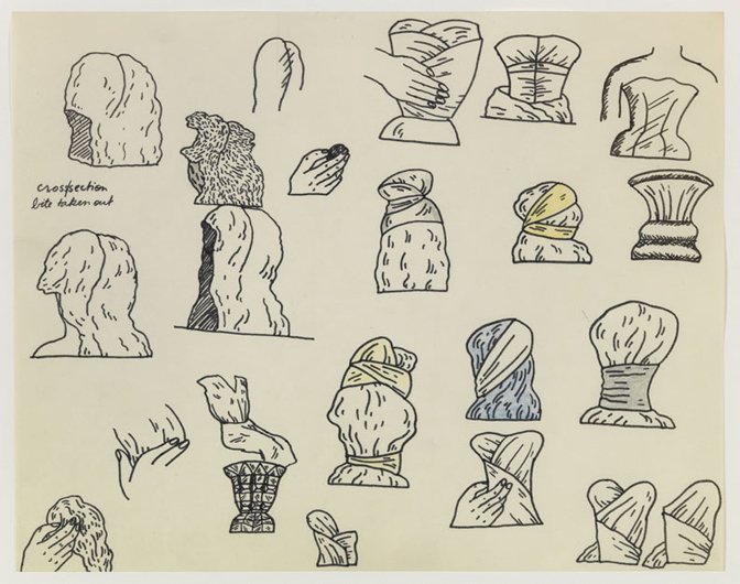 Untitled (wrapped torsos) c. 1967 felt-tip pen on paper 8 x 10 inches; framed