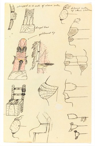 Untitled (bound profiles) c. 1972 black ink and colored pencil on paper 8 x 5 inches; framed
