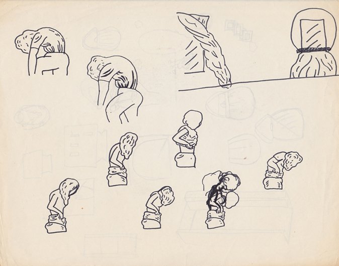 Untitled (hunched women and more) c. 1968 felt-tip pen and pencil on paper 11 x 8 1/2 inches