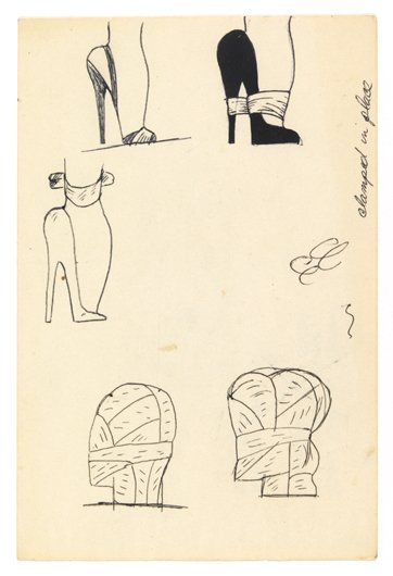 Untitled (shoe and hips) c. 1968 felt-tip pen on paper 1 3/4 x 2 1/2 inches; framed
