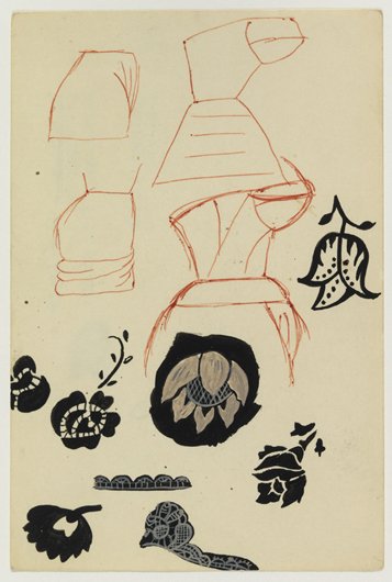 Untitled (women covering head) c. 1968 felt-tip pen on both sides of paper 7 1/4 x 4 1/4 inches