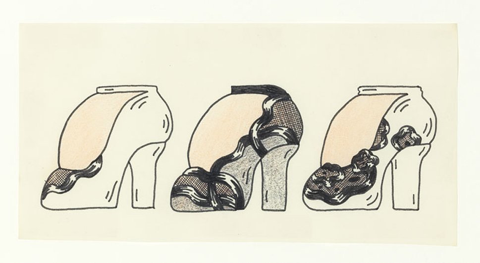 Untitled (3 shoes) c. 1968 colored pencil and black felt-tip marker on paper 4 x 8 inches