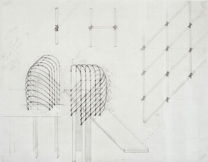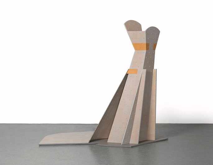Diane Simpson, born 1935, is a Chicago-based artist who for the past forty years has created sculptures and preparatory drawings that evolve from a diverse range of sources, including clothing, utilitarian objects, and architecture. The structures of clothing forms has continuously informed her work, serving as a vehicle for exploring their visually formal qualities, while also revealing their connections to the design and architecture of various cultures and periods in history. Her wide selection of materials (wood, perforated metals, linoleum, fabrics) reflect her interest in the coexistence of the industrial/architectonic and domestic worlds. She has exhibited widely in the US and abroad; most recently in the 2019 Whitney Biennial as well as solo exhibitions in 2020 at Nottingham Contemporary, in the UK and Wesleyan University. In 2010, a thirty-year retrospective was held at the Chicago Cultural Center, and she has had solo exhibitions at the Museum of Contemporary Art, Chicago, and the Institute of Contemporary Art, Boston. In 2019 Simpson was one of the ten recipients of the "Anonymous Was a Woman" award. Her work is in the permanent collections of the Whitney Museum of American Art, NY; Art Institute of Chicago; Institute of Contemporary Art, Boston; Museum of Contemporary Art, Chicago; Hessel Museum of Art, Annandale-on-Hudson, New York; Illinois State Museum, Springfield, IL; Perez Museum, Miami, FL; and the Kadist Art Foundation, San Francisco and Paris, FR. She received a BFA in 1971 and an MFA in 1978 from the Art Institute of Chicago. Simpson is represented by Corbett vs Dempsey, Chicago; JTT, NY; and Herald St, London.