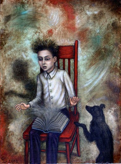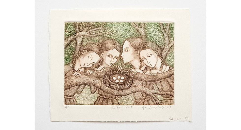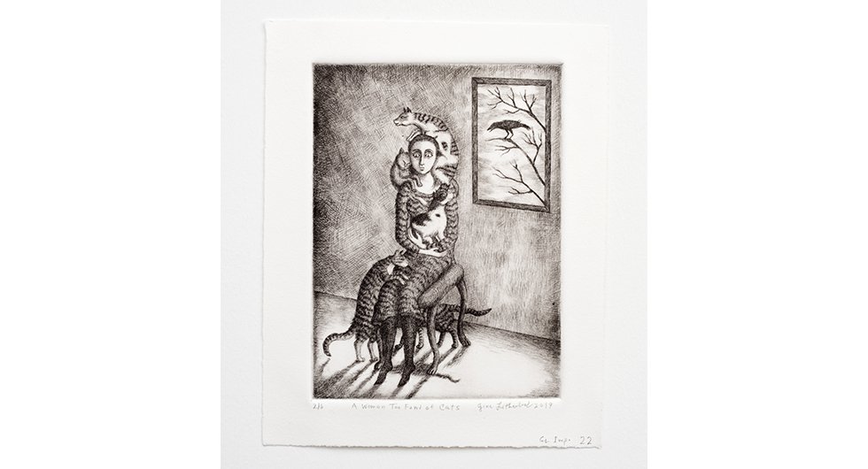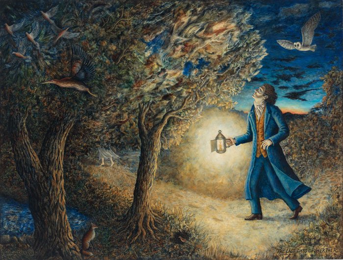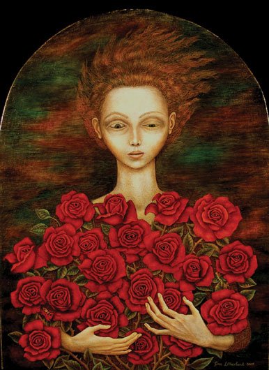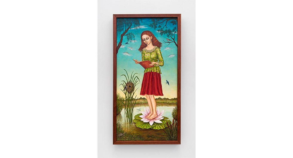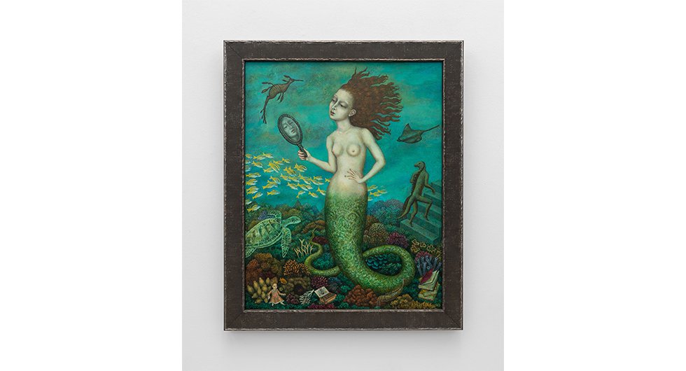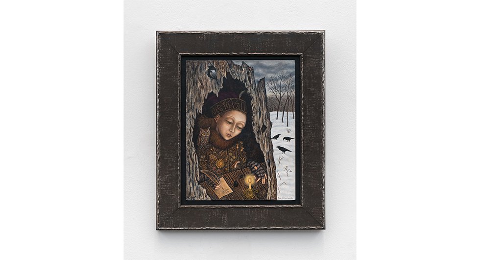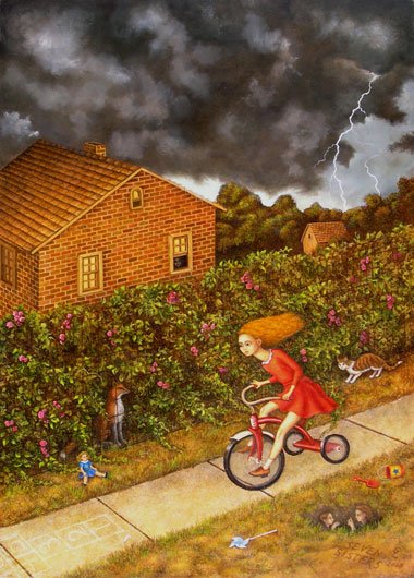 b. 1955 Lives and works in Wisconsin. In her magnificently detailed and inventive paintings, Gina Litherland extends a tradition of Midwest surrealism and magic realism that stretches back to the ’30s and ’40s and the work of Gertrude Abercrombie, Sylvia Fein, Julia Thecla and John Wilde. Born in Gary, Indiana, Litherland has been active in the visual arts since the mid 1970s, exploring photography, performance, and painting. From 1979 to 1982 she participated in weekly experimental multimedia performances at the Emergency Theatre in Chicago. Long a resident of Chicago, she studied painting at the School of the Art Institute, and her paintings, drawings, and articles have been published worldwide in journals and periodicals associated with the international surrealist movement. Her essay on the connections between creative activity and the natural world, “Imagination & Wilderness,” appeared in Surrealist Women: An International Anthology, published by University of Texas Press. Litherland’s recent work was the subject of a museum exhibition at the James Watrous Gallery of the Wisconsin Academy of Sciences, Arts, and Letters in Madison in 2006.