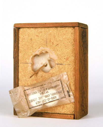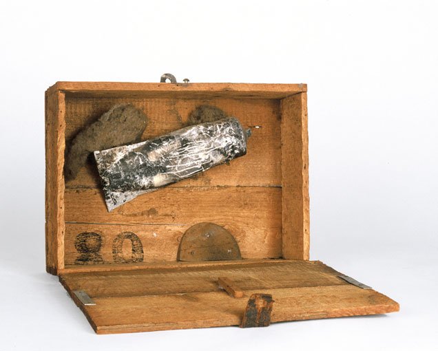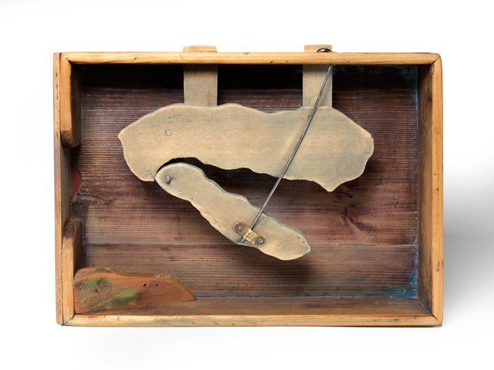 Since that time, along with large-scale oil paintings and delicately lyrical watercolors, Brötzmann has amassed an oeuvre of small constructions, often using found or fabricated wooden boxes as both support and frame, sometimes integrating metal elements including cans, can lids and rusted industrial detritus. In recent years, retrospectives of Brötzmann’s artwork have been mounted in Sweden and Germany.