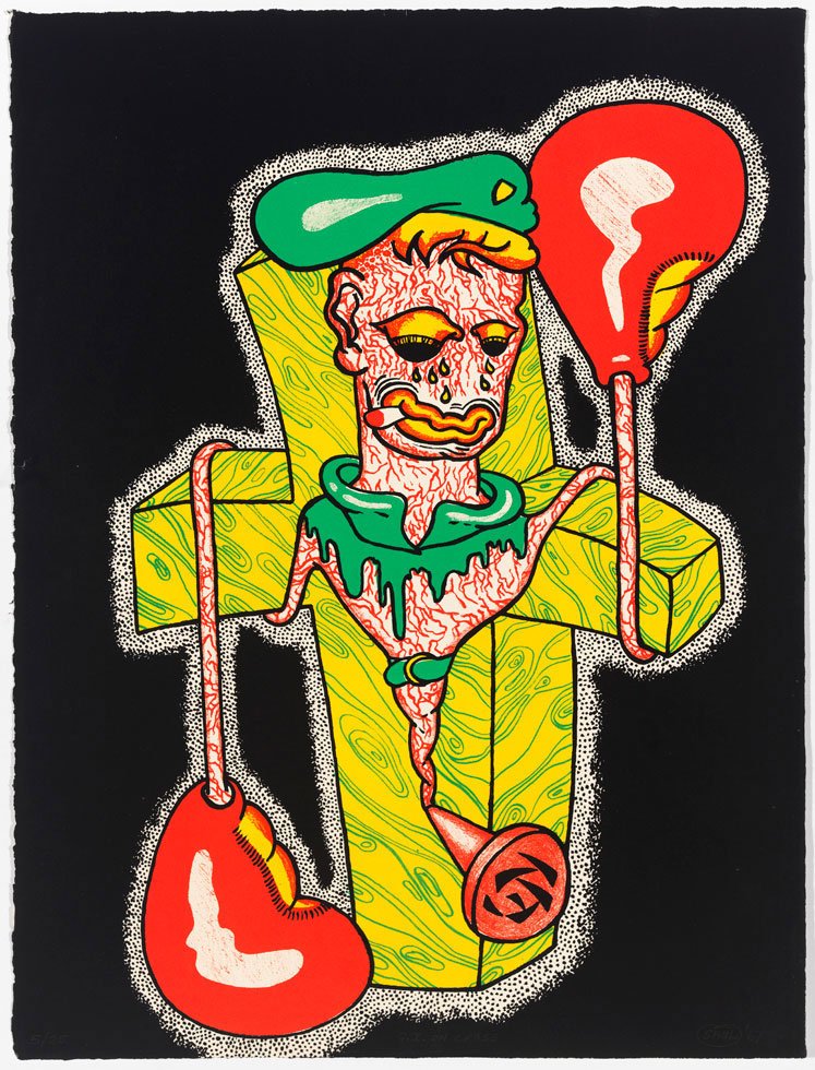 Peter SaulG.I. on Cross1967color lithograph on paper24 x 18 inchesedition of 25
