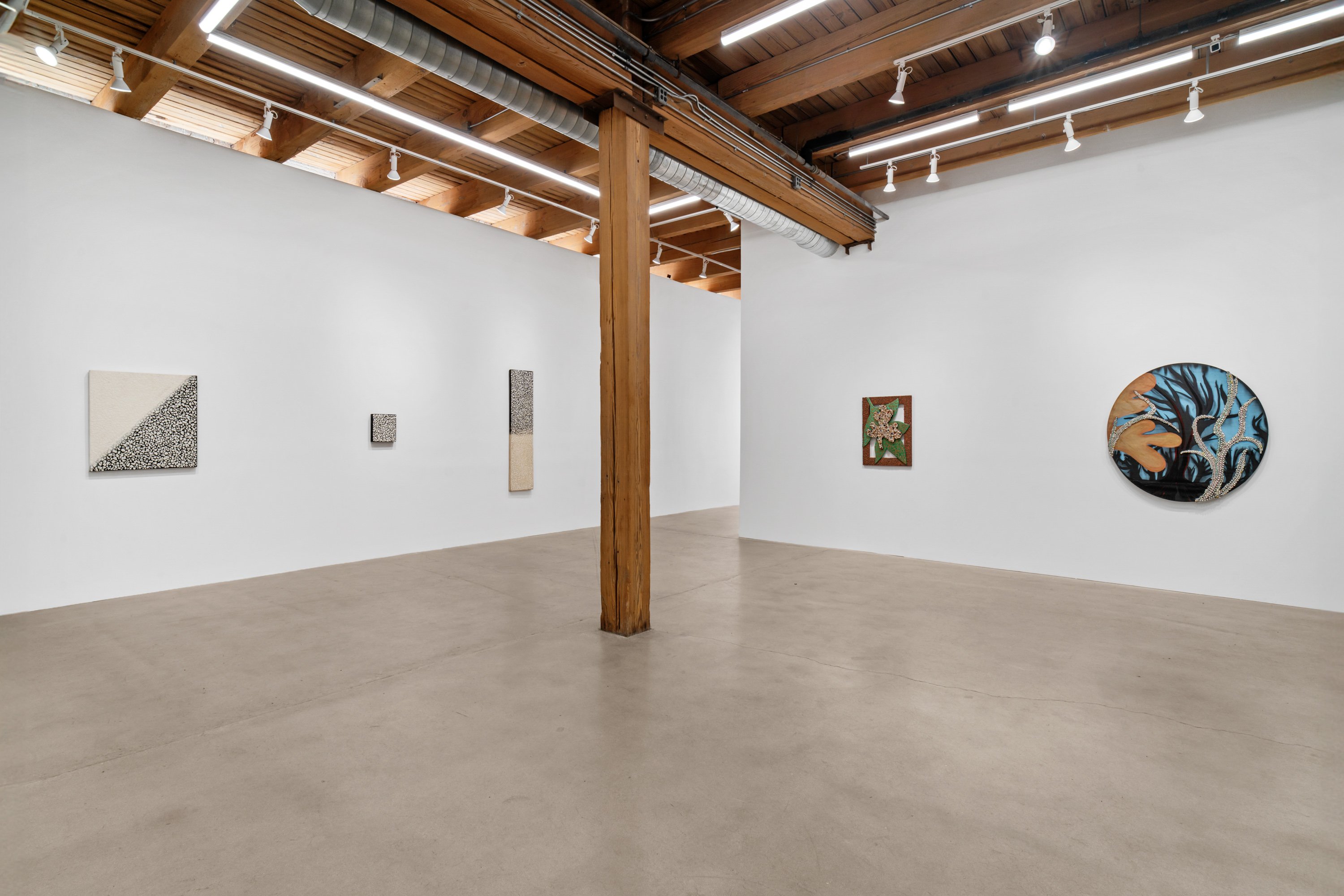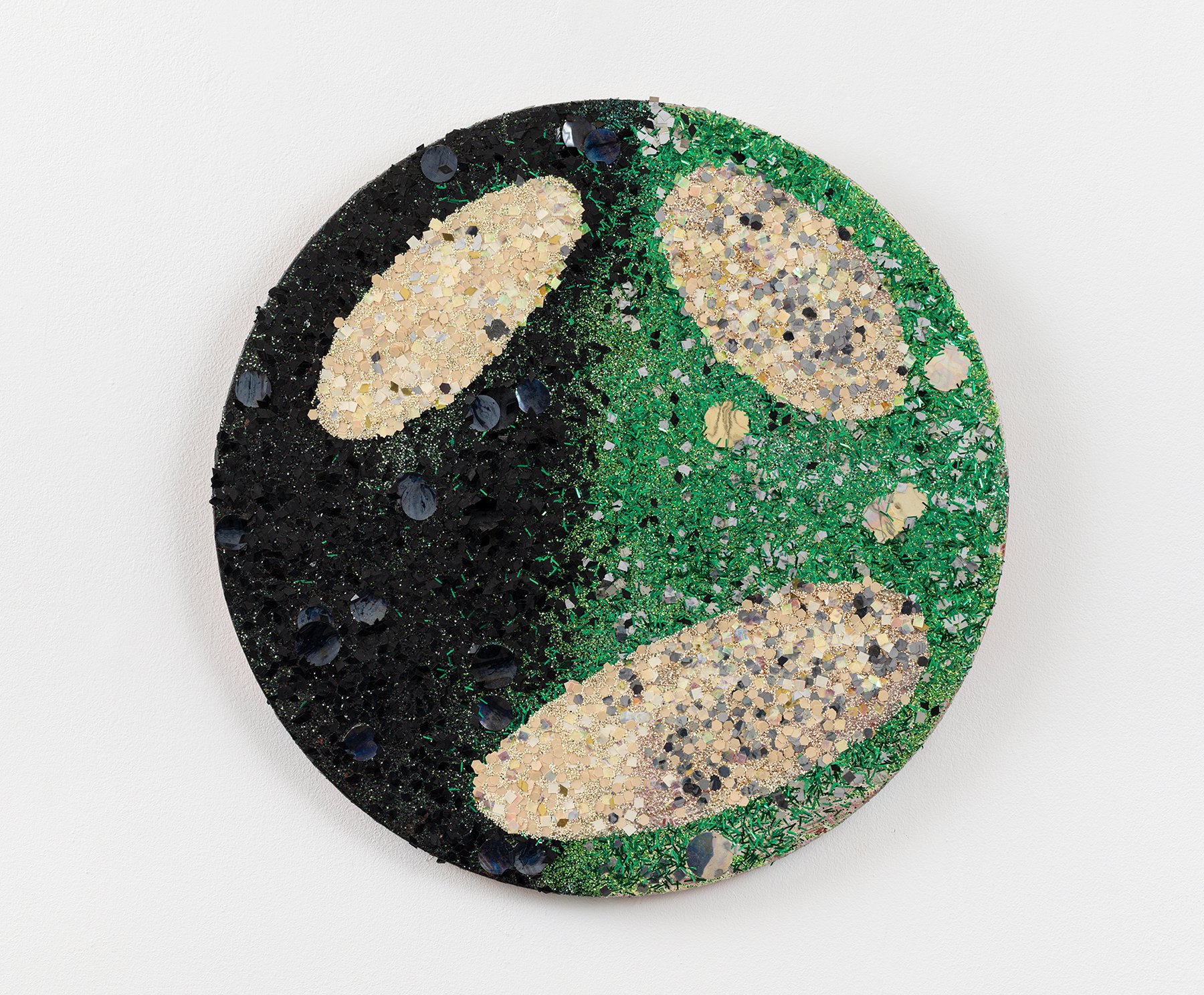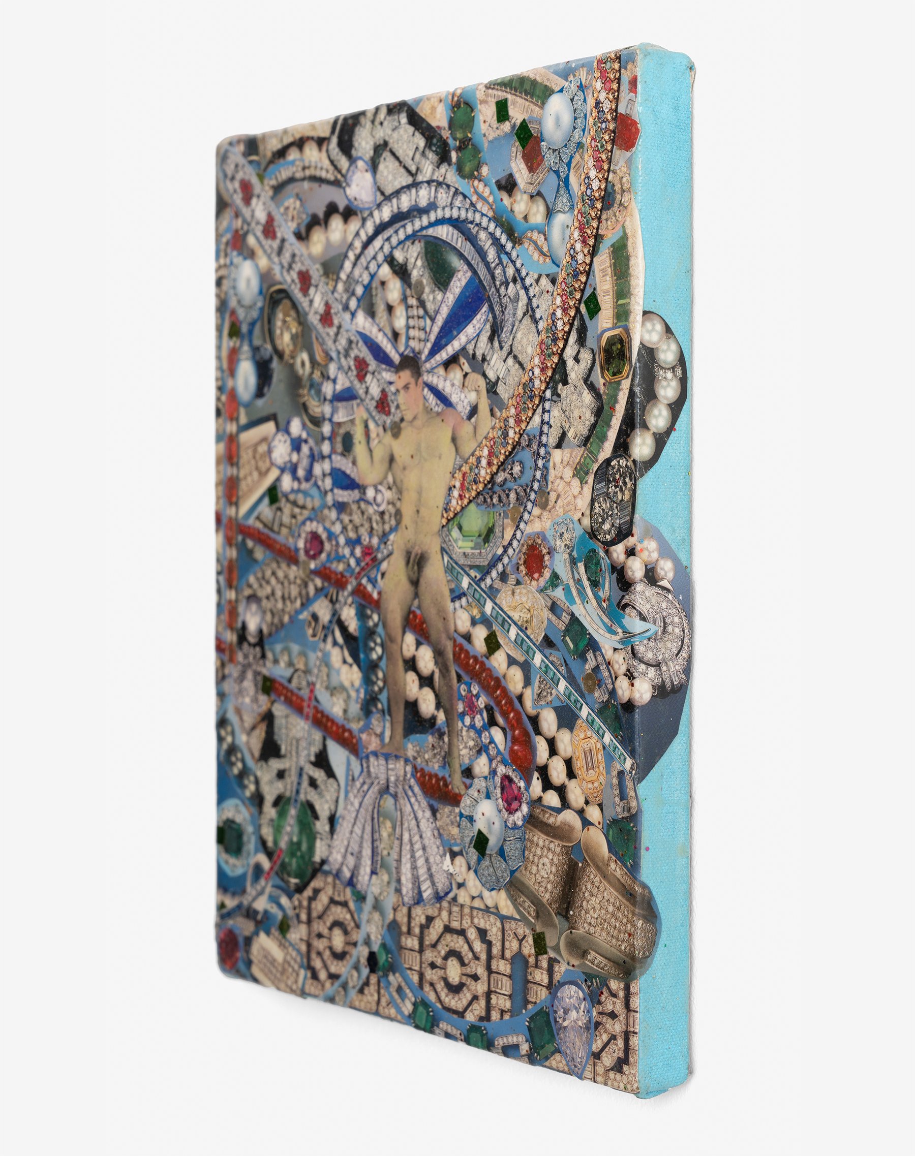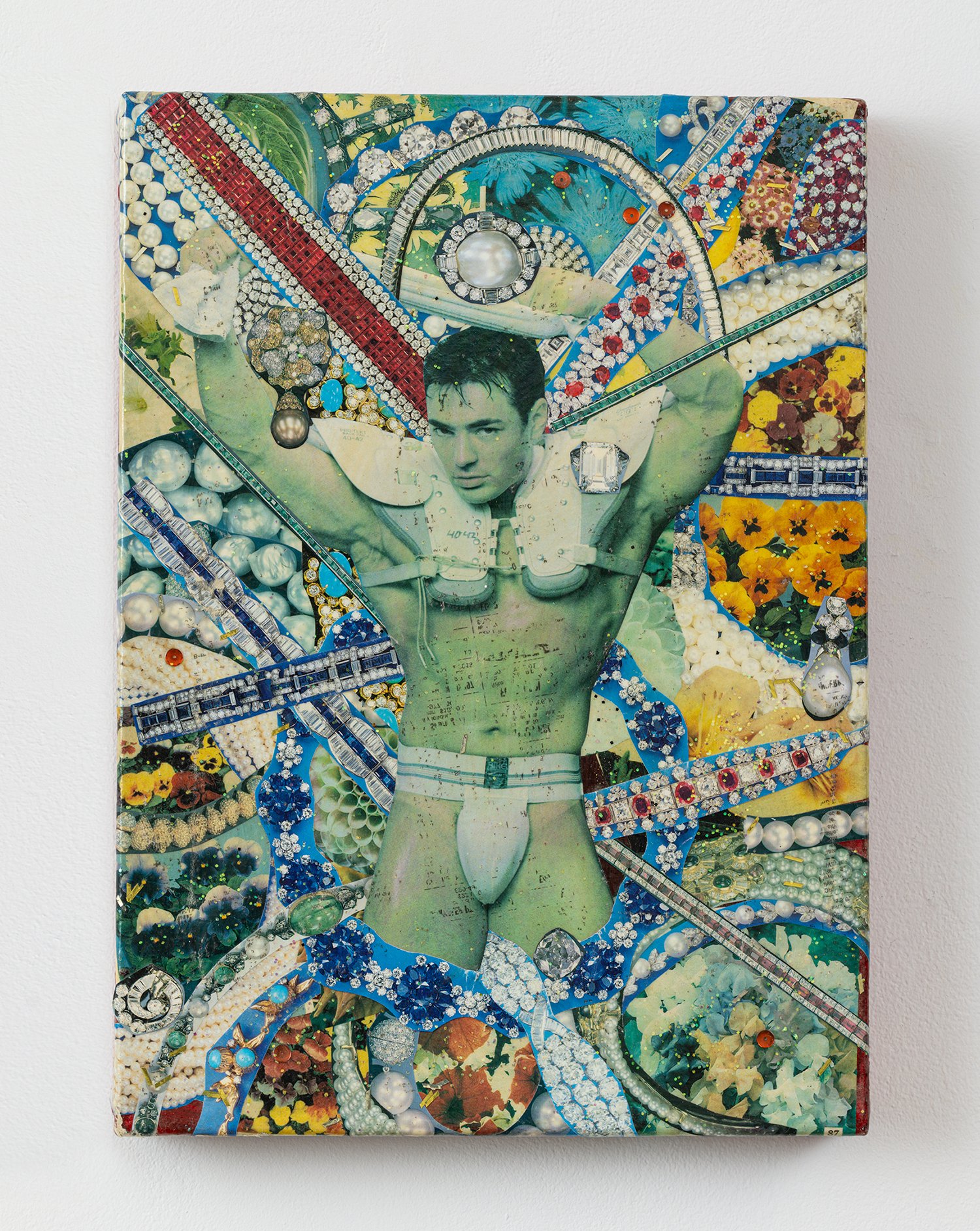 Born in Chicago, Arch Connelly (1950-1993) attended graduate school at Southern Illinois University (SIU), in Carbondale, Illinois, where he majored in ceramics. In the mid 1970s, Connelly lived in San Francisco, where he was associated with the gay performance troupe Angels of Light, together with fellow artist Martin Wong, and designed sets for the Cockettes. Settling in New York in 1980, Connelly quickly became an important new figure on the East Village art scene, starting with a solo exhibition at Artists Space and continuing with four solo shows at the legendary Fun Gallery, among other venues including White Columns, Holly Solomon Gallery, and Castelli Graphics. Connelly charted a very personal terrain in his work, using faux pearls, silk, sequins, glitter, and shattered eggshells to create what Rene Ricard called "space age surrealism," a sort of alchemical admixture of materials and images, embracing kitschy opulence by raising it to a new altitude and forcing it into a complex new identity. "Connelly pushes this decadence just one step further," wrote artist Jeff Perrone. "Where formal rigor turns dark, into an area where the bubbly takes an ominous tinge, into the arena of fin-du-siecle stage setting, blatantly theatrical, paintings like heavy velvet curtains ready to part, waiting for action to begin." Decades ahead of his time, exploring an explicitly queer aesthetic in a manner that could easily be mistaken for something brand new, Connelly made oval and circular smiley-face canvases as well as gay porn collages, all constructed out of fabulously shimmering and cheaply obtained materials. With a career on the rise, one of Connelly's porn collages graced the cover of the November 1991 issue of Artforum. Tragically, he died of AIDS less than two years later, at age 43. Although he has been seen in recent group exhibitions at the Whitney Museum of American Art and the Art Institute of Chicago, as well as being the subject of an in-depth survey at SIU last year, this is the first solo exhibition of Arch Connelly's work in the city of his birth and the first commercial gallery presentation to showcase his artwork since his untimely passing, spotlighting rare collages and major works on canvas, focused specifically on his wall-hanging compositions.