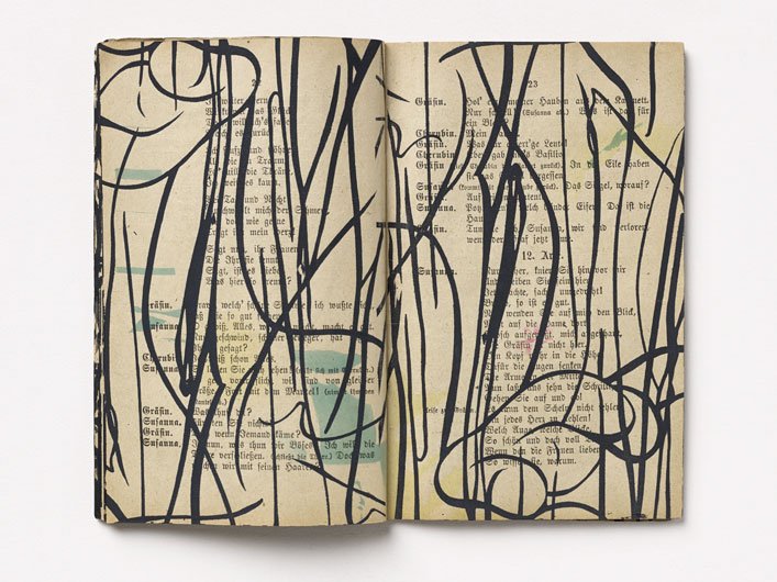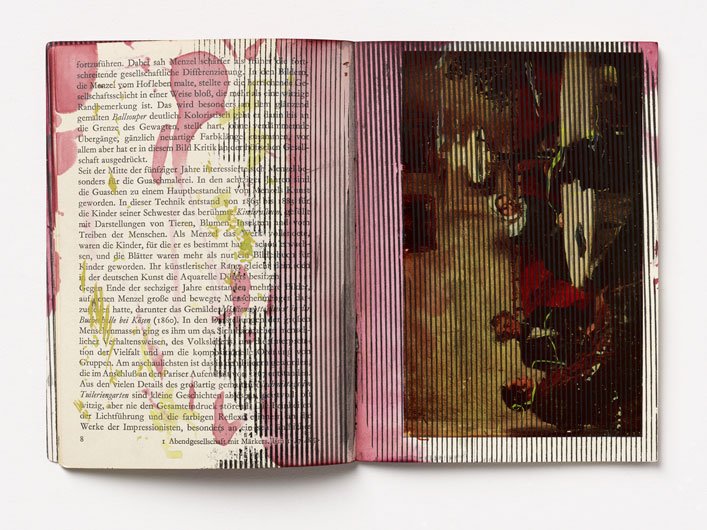 In his second Corbett vs. Dempsey exhibition, Arturo Herrera unveils his newly minted artist books. Grouped and boxed in sets of 10, these unique works are interventions into hand-selected flea-market finds, both cloth-bound and paperback specimens, that the artist has reworked with serigraphy, printing onto each page spread, overlaying optical patterns, expressionistic lines, or swooping cartoon shards. Closely related to Herrera’s collages, these books refrain from cutting and mixing, instead leaving all the elements in situ, executing all operations on material compiled in a given format. The result, in every case, is a transformed object, a fragment of literature page-by-page rejuvenated, resuscitated, reborn.