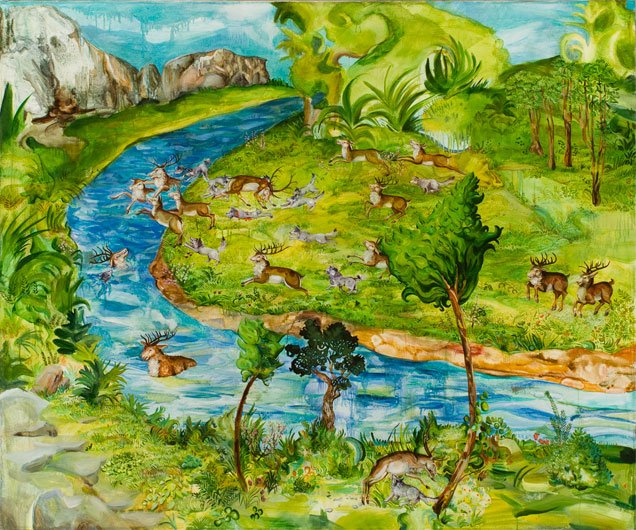 Over the last half decade, CvsD has noted a new wave of exciting young artists making uncommonly strong work. This show culls a baker’s dozen of the best, all of them affiliated with the School of the Art Institute, many of them with its summer school, OxBow. Though all of the pieces in the exhibition are paintings, they are in a range of media and sizes, on paper, canvas, board and a single painted object. Subject matter is similarly various, ranging from deeply considered abstractions and iconoclastic figurative canvases to animals and wild landscapes. Reference points include earlier generations of Chicago art from the Monster Roster and Hairy Who, and contemporary heavyweights from Richard Artschwager to Peter Doig.