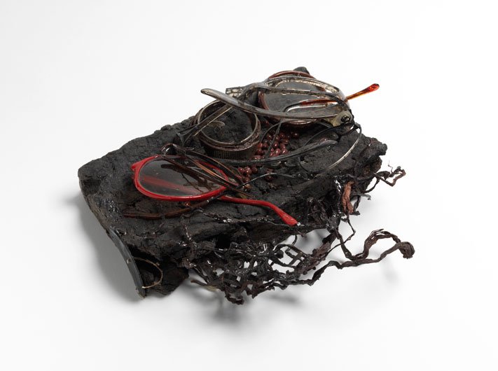 To complement Hamady’s show, Corbett vs. Dempsey has assembled Bookish, an exhibition of book-related works by a diverse range of artists. These include more conceptually oriented pieces by Bruce Nauman (a gorgeous 1968 bookwork), Gary Hill, and Richard Artschwager, a rare, early, accordion-fold book by Kerry James Marshall, Molly Zuckerman-Hartung’s book-painting “The Worl of Matisse,” a vibrant painted book by Arturo Herrera, an exquisite 1970s book of woven paper by Sarah Canright, gritty book assemblages by Allison Knowles and Rodney Quiriconi, and an insanely cool facsimile book by Steve Wolfe, one of the most dogged book-investigator-artists.
