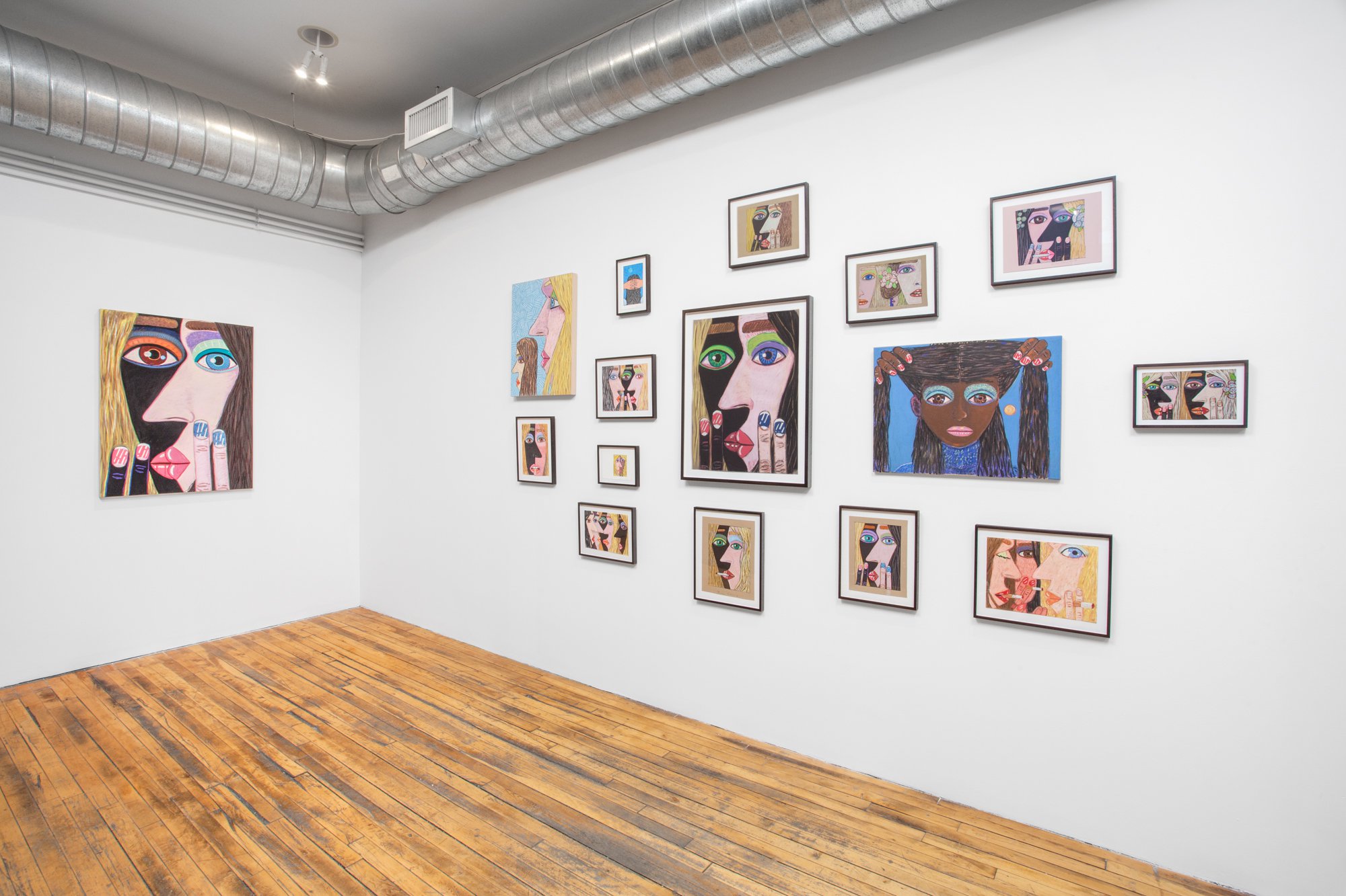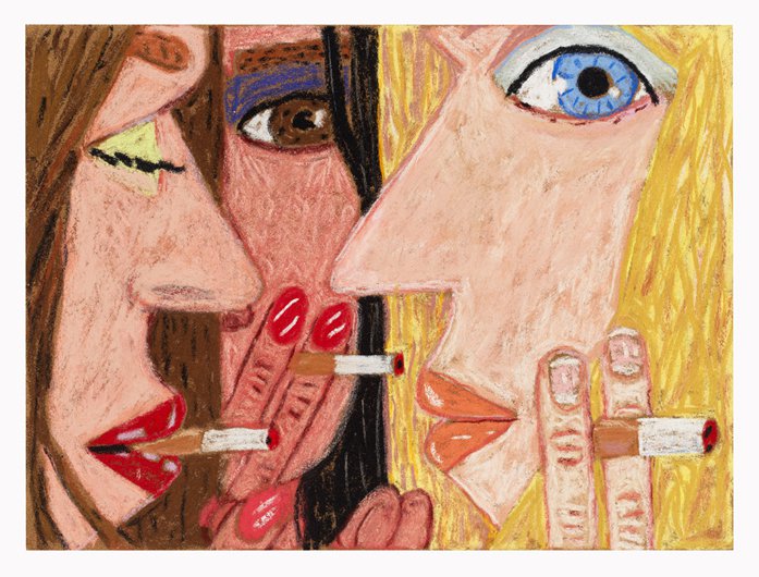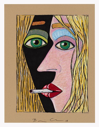 Brian Calvin emerged over the last 15 years as an innovator in the reinvigorated field of figurative painting in the U.S. Calvin’s studies at the School of the Art Institute of Chicago proved formative – indeed, he was a star student of Ray Yoshida and Barbara Rossi – although a return to California is also reflected in his vibrant paintings, which pop and glow with radiant light that might reasonably be called “West Coast.” Each intimately cropped work is imbued with emotional complexity and psychological character, in part through the act of cropping – often the figure (or figures) occupies a tunnel-like space, suggesting an intense interior space of devious monologue or whispered conversation. Recent developments in Calvin’s works include a focus on multiple figures – interlocking women’s faces, chiaroscuro yin and yang, sometimes smoking or pressing finger to lips. The paintings are often executed on board, which allows Calvin to explore different modalities of touch and mark, often more expressive than the flat, refined, harder-edged work of a few years ago. And Calvin has also returned to drawing, an important part of the first phase of his mature work; at CvsD he will show a group of new drawings, many of them vigorously worked, sometimes directly related to paintings, but featuring yet another characteristic feel, with scumbled lines drawn over paint. Pressing On includes large-scale paintings and a salon style wall of works on paper.