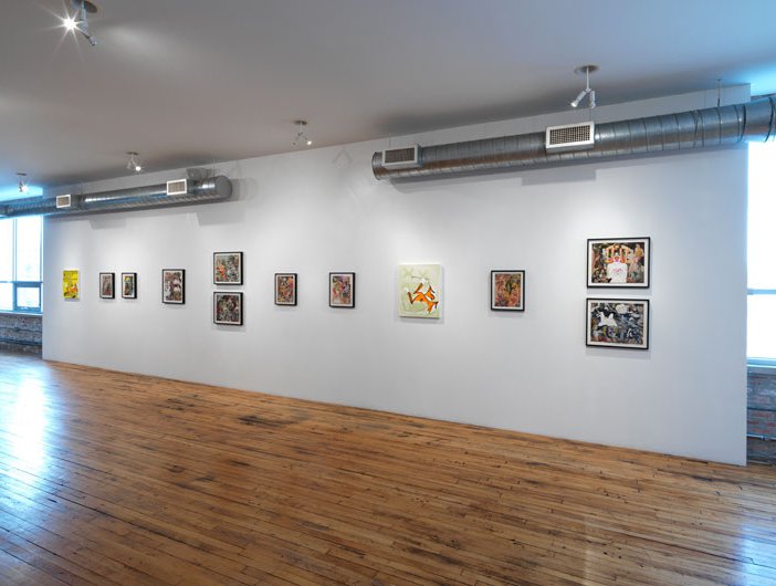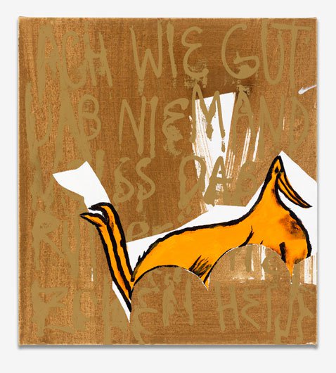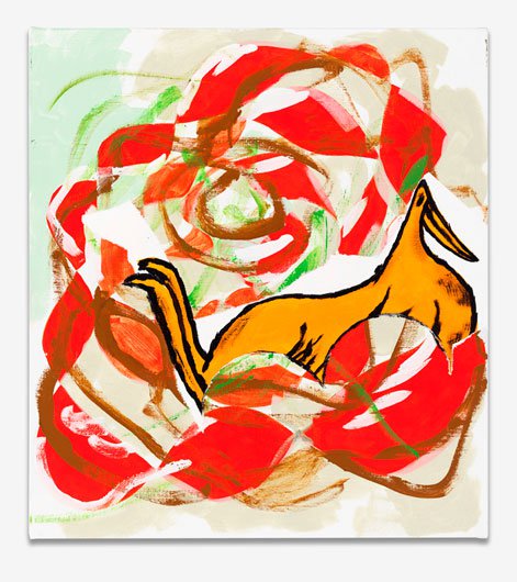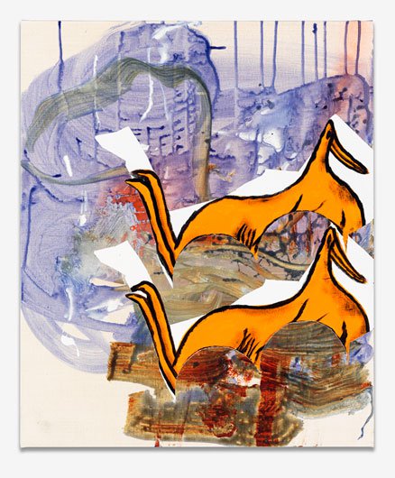 As a perfect counterpoint to Tanaami, painter Charline von Heyl follows her CvsD exhibition last year, Interventionist Demonstration (Why a Duck?), with a reply-show, Why Not? Nine smallish canvases, each of which features the same duck motif that was born in von Heyl’s mural-like painting from the last show (now part of the Art Institute of Chicago’s permanent collection), are distributed throughout the gallery, sneaking up on the Japanese collages, hiding in a corner, peeking from behind a wall. The bright orange ducks interrupt the proceedings the same way they interrupt the little paintings – with irreverence and an unrepentant sense of play. A surprise move from one of the most surprising painters in contemporary art, Why Not? is a question and an answer rolled into one.
