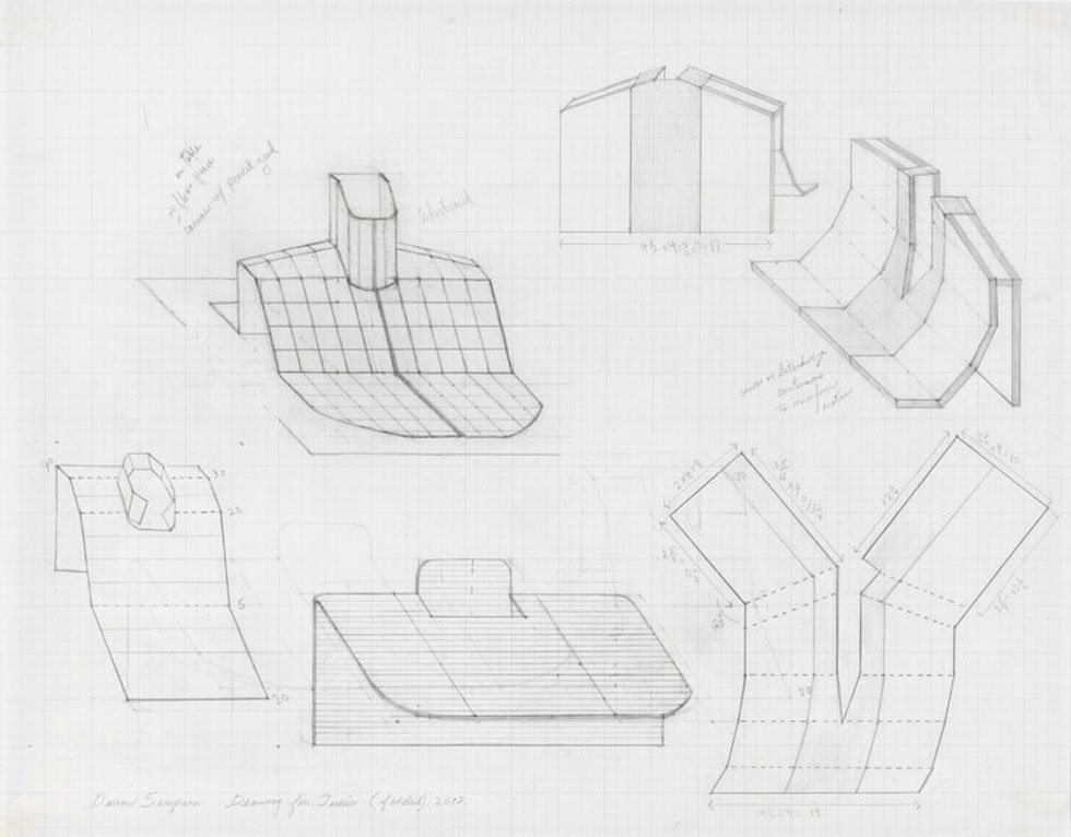 Early in her career, Simpson introduced a way of making 3-D work that translated from drawings, concentrating on the 45-degree angles that helped define a certain kind of perspective. She continues this investigation with an important new piece, based on the same set of calculations, as well as unveiling new freestanding, wall hanging, and shelf-based works. Along with these new sculptures, Corbett vs. Dempsey presents several new drawings, executed on graph paper, which stand both as studies for the sculptures and fully-realized, independent works on paper.