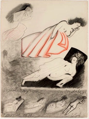 Paintings, drawings, sculpture and prints by one of the unsung early Chicago imagists, Jimmy Wright, now a renowned New York artist, spotlighting his rarely seen work from the ’60s and early ’70s. This exhibition of nearly 50 pieces will include many never-exhibited works on paper from Wright’s period in Chicago (the majority of which was destroyed in a catastrophic fire in the early ’70s), including two Maxwell Street etchings from 1966 (a copy of one of which hangs in the Roger Brown Study Collection), as well as his bronze and ceramic sculptures from the same period. Close friend of Philip Hanson and Roger Brown, Wright studied at the School of the Art Institute of Chicago from 1964-1968. Wright’s uncommonly rich graphite drawings and enormous acrylic paintings from his several subsequent years downstate in Carbondale, Illinois, will also be on exhibit, as will a number of his large cityscape paintings of New York, painted just as he moved there in 1974, and a collection of his wickedly funny homoerotic baptism paintings and other scenes mixing eroticism and religion. One large sunflower painting completed this year will bring the show forward to Wright’s present work, which has been hailed by The New Yorker as “…van Gogh on acid.”
