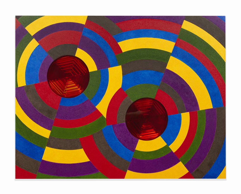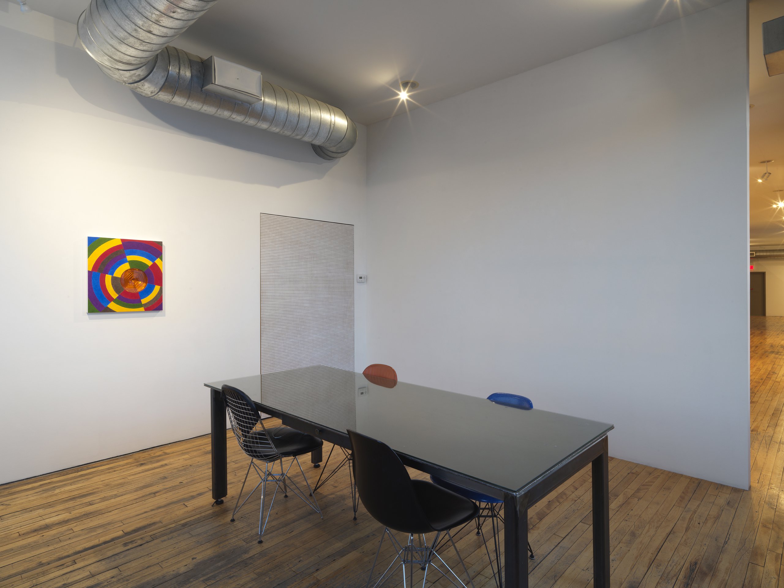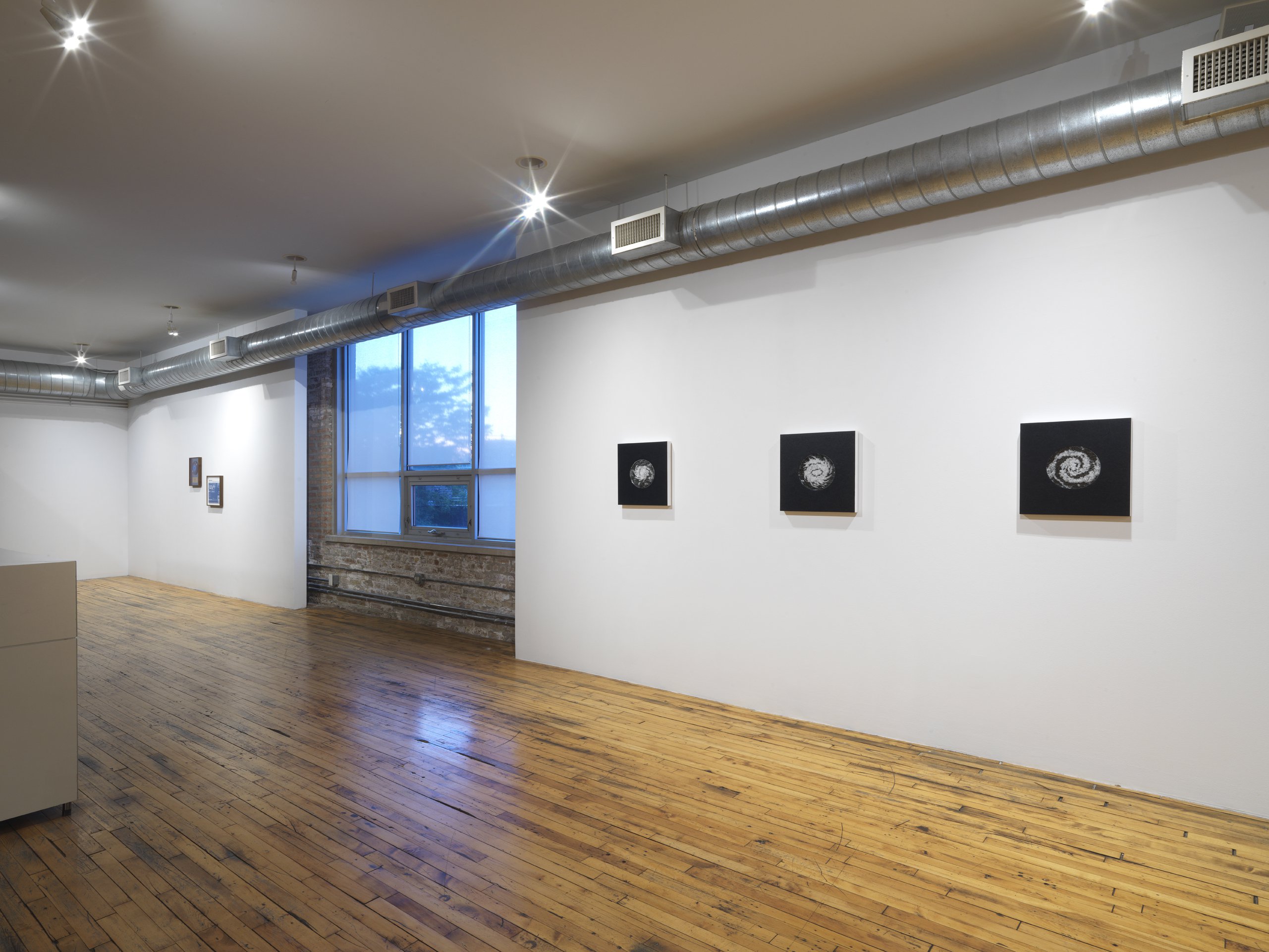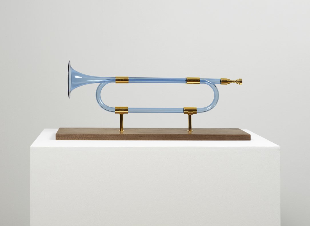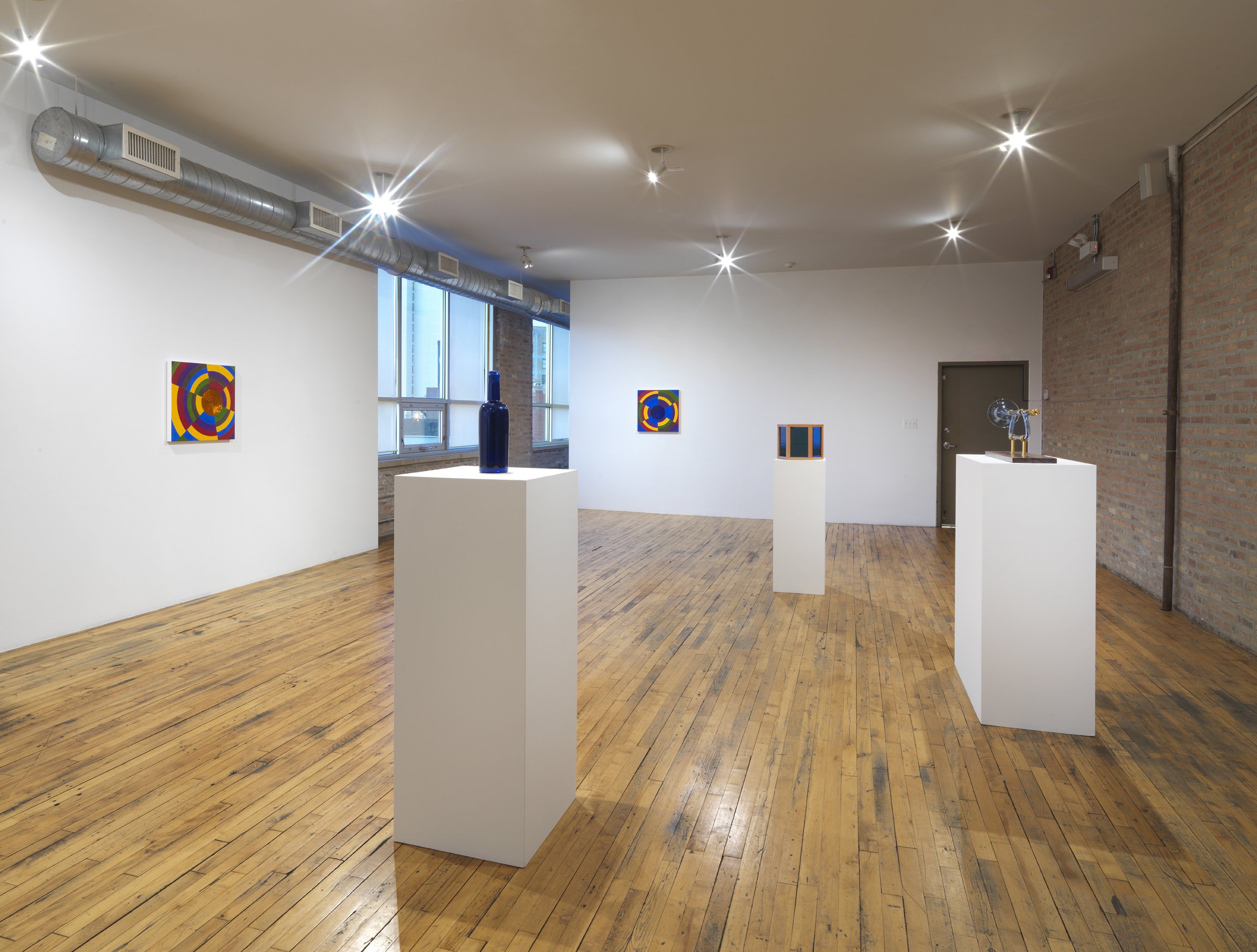 An exhibition of new works by Josiah McElheny, a diverse array of pieces that include brilliant and joyous Cosmic Sun Paintings, inspired by Sonia Delaunay; Cosmic Galaxy Paintings, black and blue with impossible inset galactic glass; the Cosmic Blue Trumpet, designed to be played by Joe McPhee; a Cosmic Love Blue Record, which can only been seen, not described; and bottles of the Cosmic Elixir, a handblown blue glass bottle filled with music that has been distilled into liquid form, a magical and elusive potion known to free one from many afflictions and to set the particles of the brain into ultra-high-speed motion.