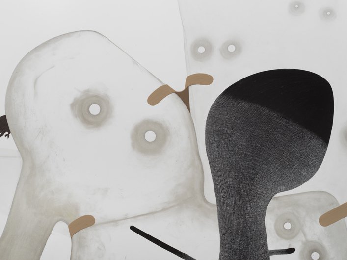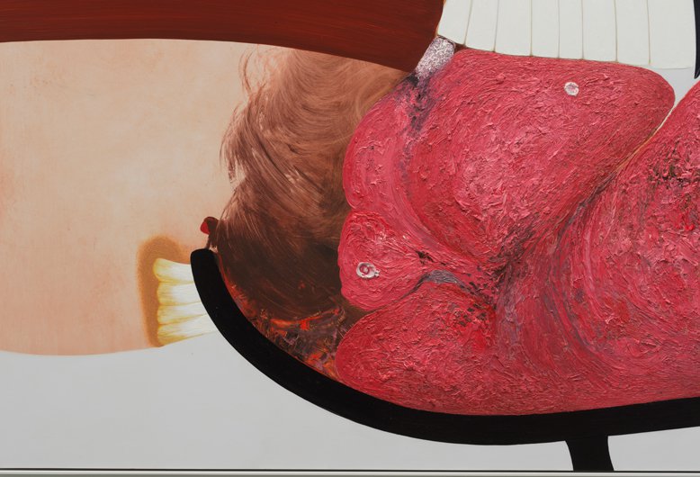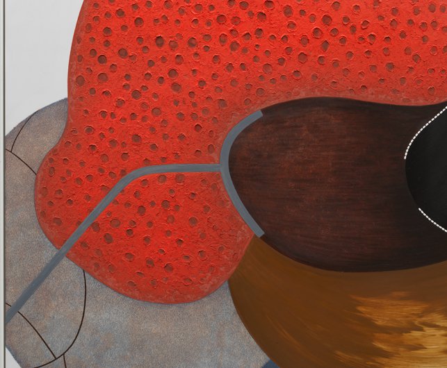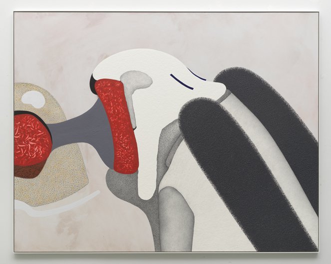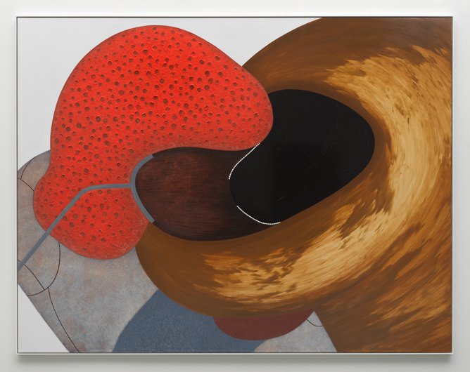 Opens Friday, October 20, 2017, 6-8 PM Corbett vs. Dempsey is thrilled to present A Sawdust Feast, featuring new paintings and a new drawing by Lui Shtini. This is Shtini's second exhibition at the gallery. Born and raised in Kavaje, Albania, Shtini emigrated to the United States at the beginning of the 2000s, and he now lives and works in New York City. Over the course of the last two years, Shtini has set himself the ambitious goals of shifting his imagery and changing scale. His earlier works were centered on portrait-like forms, busts of imaginary beings at once abstract and concrete, with immaculate attention to the details of paint application. Each one of the small paintings a veritable primer on unorthodox techniques. In his new, large scale paintings, Shtini has adopted a new support – Dibond aluminum – and has complicated the near-symmetry of the portraits, introducing multiple organic forms into the framed field. Two or more forms are often locked in some agonistic, intimate, even perverse interaction, their surfaces sinewy or slick, pockmarked or fuzzy, toothed or hairy. The cropping of the image is equally important, providing additional tension and suggesting lurking presences outside the visible arena. All Shtini's wondrous attention to painting is still very much present, abetted by areas of looser application and other unforeseen delights. In his recent drawings, one example of which is included in the exhibition, Shtini explores similar images with appropriately different methods, investigating the specificity of charcoal and graphite as applied to these magnificently monstrous pictures. As John Yau suggests in his essay for the exhibition catalog: "...he has no set way of positioning his forms. Rather, every form he makes in a work is something he discovers through the application of his medium." A Sawdust Feast is accompanied by the aforementioned 52-page catalog with color reproductions and an essay by Yau.