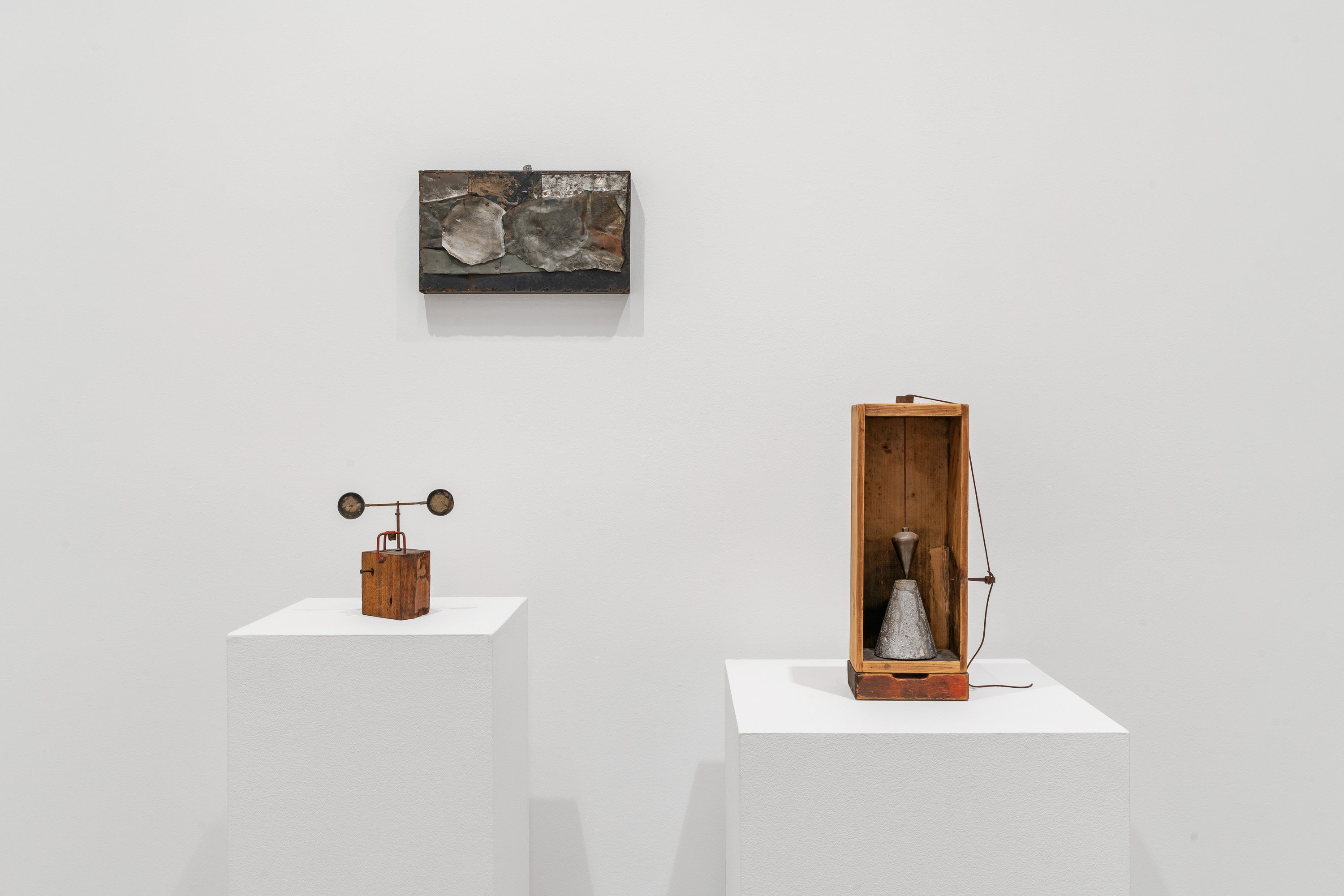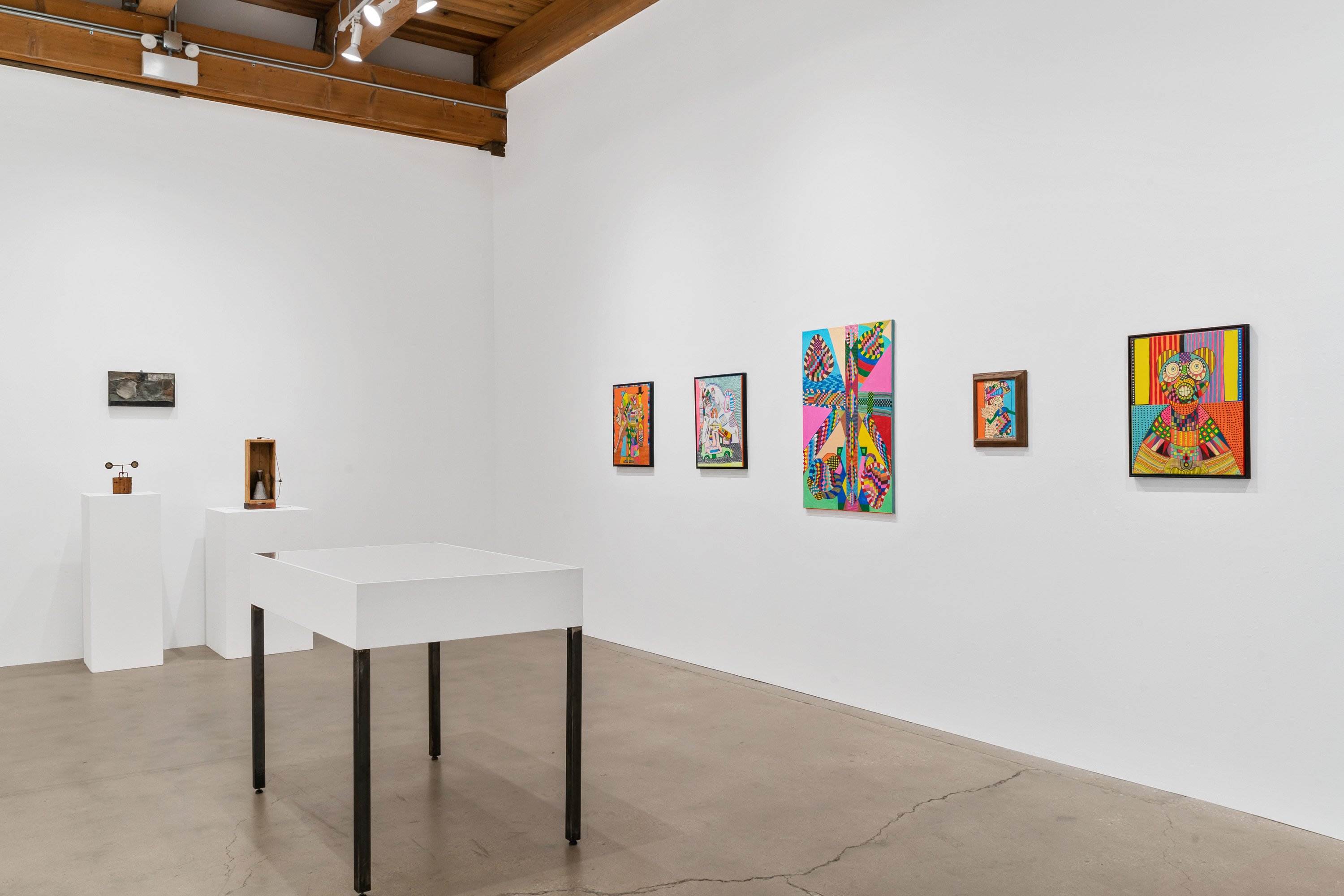 A four-person exhibition featuring Peter Brötzmann, Fred Lonberg-Holm, Roscoe Mitchell, and Sun Ra. The grouping demonstrates the gallery's commitment to improvised music and hearkens back to the gallery's third show, Eye & Ear: Artist-Musician, a massive round-up of people working across the musical and visual arts, mounted in 2004. Peter Brötzmann, who died in 2023, gave a solo saxophone concert during the exhibition and his work was part of the show. Over the years, CvsD worked extensively with Brötzmann, both in Chicago and elsewhere, also releasing several CDs of his music. Here the titanic improvisor is represented by two small sculptures and an early wall-hanging metal landscape. Fred Lonberg-Holm is an internationally acclaimed cellist, as well as a visual artist; five of his radiant stained glass works, all of which refer to the iconic image of an LP, are on display. CvsD was honored to present the first gallery exhibition of legendary musician and composer Roscoe Mitchell in 2023. In this context CvsD presents six vivid new paintings of Mitchell's, previously unseen. And the intergalactic trickster Sun Ra is represented by a vitrine of subtly decorated tape reels and boxes dating back to the 1950s, when Ra was living and working in Chicago.