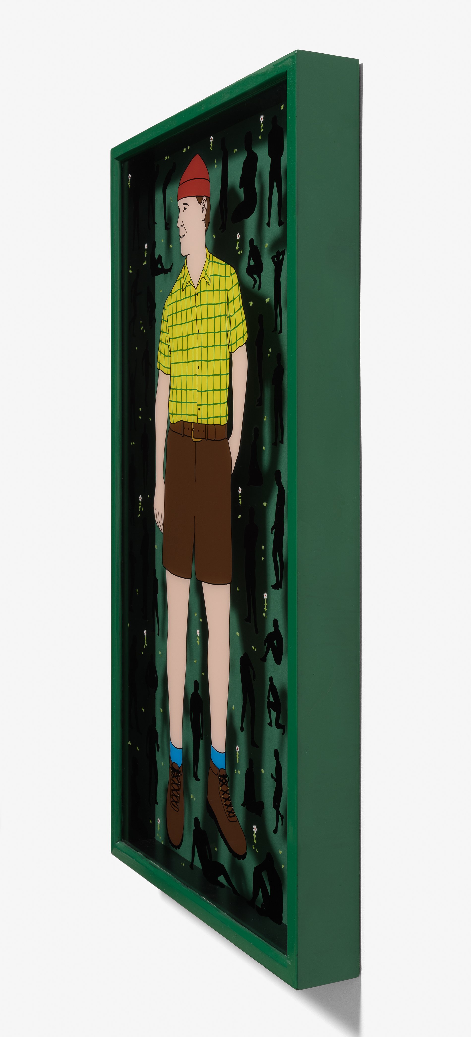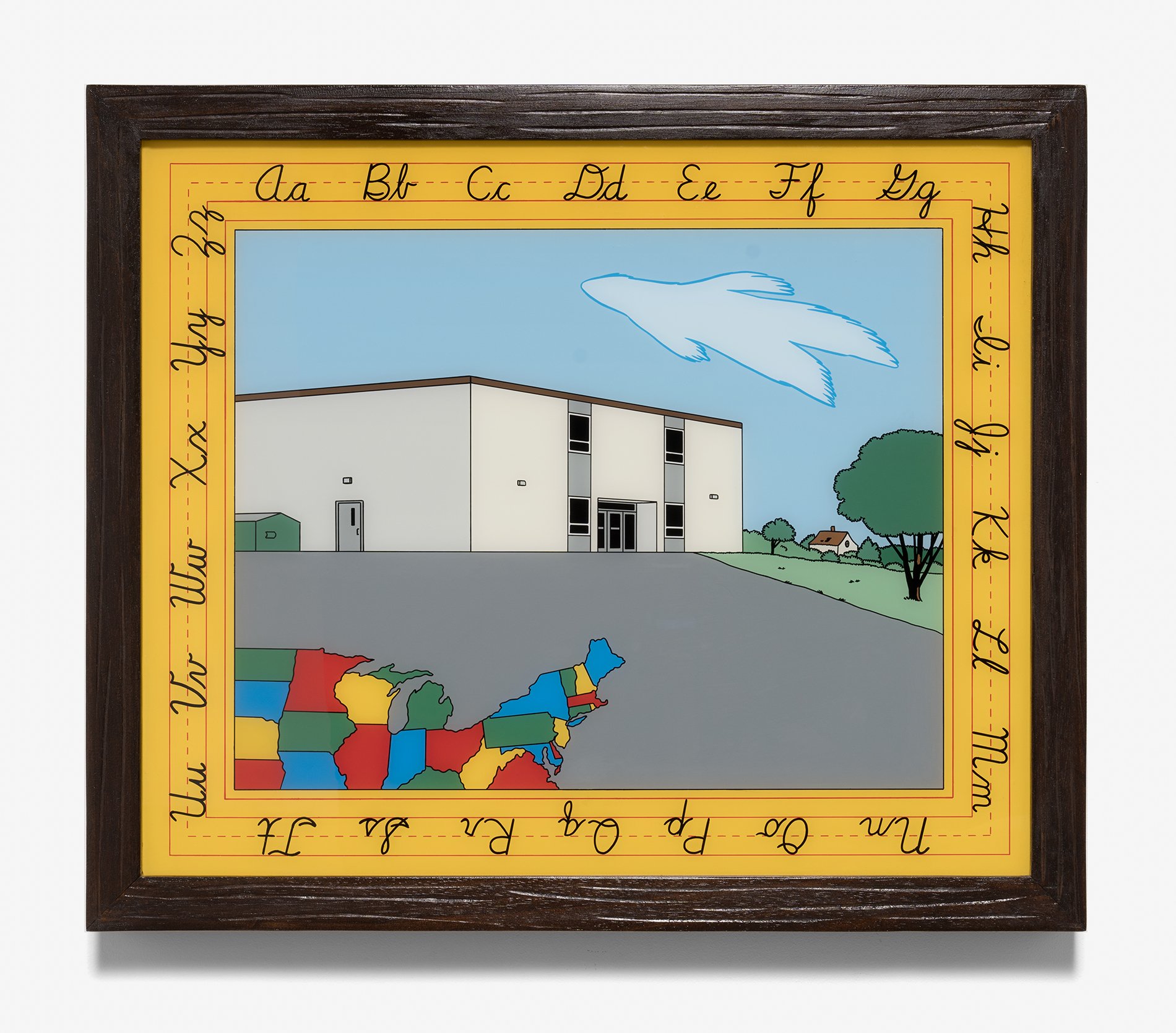 Based in Chicago, Nick Drnaso is best known as a graphic novelist. He has just finished work on his fourth book, which, like the other three, will be published on the illustrious Drawn and Quarterly press. Drnaso’s second book, Sabrina (2018), is the only graphic novel to have been nominated for a Man Booker Prize; his first offering was awarded the Los Angeles Times prize for Best Graphic Novel. Parallel to and intersecting with his graphic novel work, Drnaso maintains an active painting practice. Using back-painting on glass and plexiglass, a technique he has in common with several Chicago Imagist artists, Drnaso has created a series of portraits, highly graphic and also deeply enigmatic, often in a shadow-box format. His most recent series, which will be shown complete in this exhibition, features figureless environments, haunted suburban and urban landscapes with ghostly skies, sometimes surrounded by glyph-like borders. Like his novels, Drnaso’s paintings beg more questions than they answer, their characters and situations as mysterious as they are beautifully and meticulously rendered.