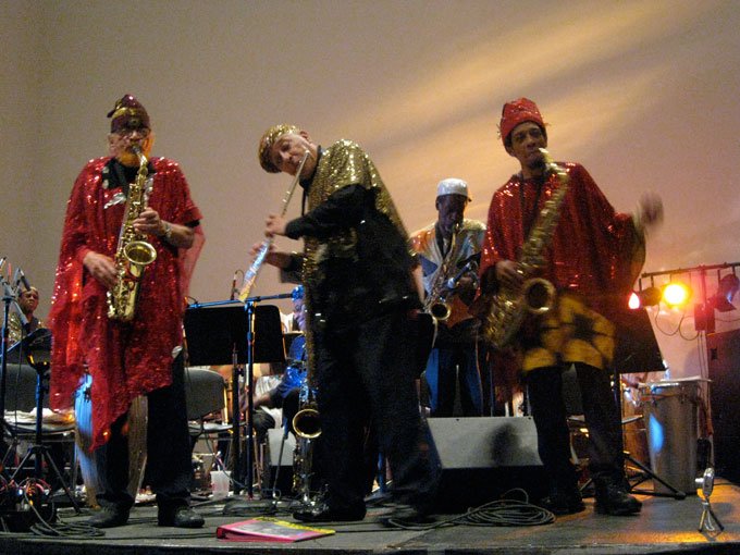 Early in his career, Sun Ra spent virtually all of his time and energy on Chicago’s south side, identifying with broader struggles for black power and identity, and saw his music as a key element in that struggle. As well as Sun Ra’s connection to the incipient grass-roots Afro-Futurist movement in Chicago, he also has a connection to Philadelphia. In 1968, Sun Ra brought the Arkestra to Philadelphia, where his band mate Marshall Allen inherited a house on Morton Street in Germantown. The house served as band headquarters until Sun Ra’s death in 1993. The Arkestra continues to perform under the leadership of Marshall Allen, who still resides at the Germantown house.