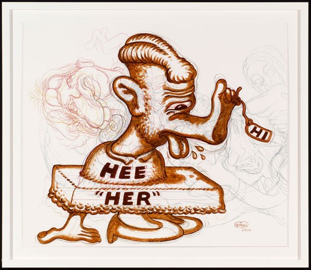 Since he emerged in the early 1960s, Saul has been one of the most singular and important painters in America. His first solo show was, in fact, in Chicago, at Allan Frumkin Gallery in 1961. Saul’s association with Frumkin, along with his dedication to figurative painting and his aggressive, uncompromising sensibility, have made him a particularly significant figure in this city; even though he’s never lived here, he’s often spoken of as if he was a Chicago painter. (An early work of Saul’s is included in the companion show to the upcoming Jim Nutt exhibition at the Museum of Contemporary Art in Chicago.) Saul’s work is never easy. He deals with resolutely un-P.C. images, his figures often contorted into impossible shapes like salt-water taffy, his themes delving into the deepest recesses of psycho-sexual and political life. Over the last decade, Saul’s profile has risen sharply; he’s been the subject of sweeping museum retrospectives, as well as a recent gallery survey, “50 Years of Painting,” at Haunch of Venison in New York. Reviewing that show in the New York Times , Roberta Smith wrote: “Saul is a closet formalist…It is a feral version of Abstract Expressionist all-overness that gradually starts making excruciating narrative sense.” At CvsD, Saul will debut two major new paintings, as well as a selection of new drawings, which are achievements in their own somewhat different, but equally edgy, manner.