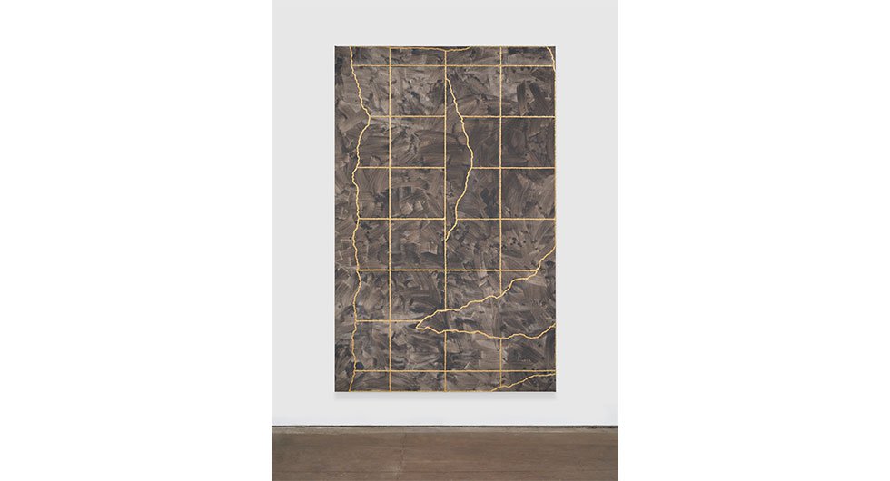 Morris is acutely aware of how expectation functions in the experience of viewing a painting, the subtle ways that pattern and repetition, rupture and interruption, the general play of continuity and discontinuity, and even literal framing devices conspire to instigate formal drama. Seven of these paintings feature beautiful low-relief impasto metallic lines that grid diaphanous space, articulate a border—or both. Untitled (#01-21) and Untitled (#11-21) interrogates a checkerboard pattern, introducing complicated brushwork into its seemingly negative spaces.