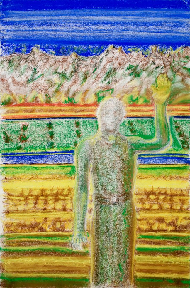 Corbett vs. Dempsey is honored to present an exhibition of drawings by Richard Artschwager. A living legend at 87, Artschwager is one of the most important and difficult-to-categorize contemporary artists. In the mid 1960s, showing at Leo Castelli in New York, he introduced brilliant, beguiling paintings and sculptures made of Formica and Celotex; one of the best known of these, Table with Pink Tablecloth (1964), is in the permanent collection of the Art Institute of Chicago and is often on view in the Modern Wing. But Artschwager refused to be be trapped by one idea or aesthetic, and over half a century he’s explored many different realms between pop, post-minimalism, and conceptual art. All along he has drawn, and indeed graphite, ink, charcoal, and pastel works have constituted a central part of his oeuvre. In this exhibition, CvsD will show a select group of new pastels, many of which feature landscapes and roadways based on the Southwest. As with all of his work, they often have an unexpected element or twist – a naked leg jutting out of a landscape or the Jolly Green Giant waving from the roadside. Some of the drawings are executed on unusual materials, including flocked and handmade paper. The entire exhibition is a wondrous and strange as could be, a haunting, visionary statement from one of American art’s great iconoclasts.