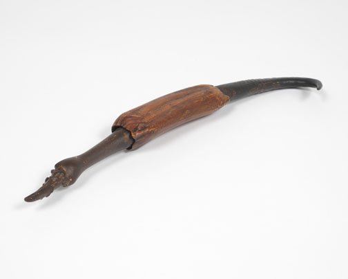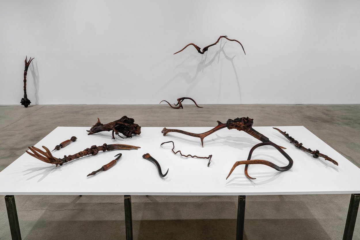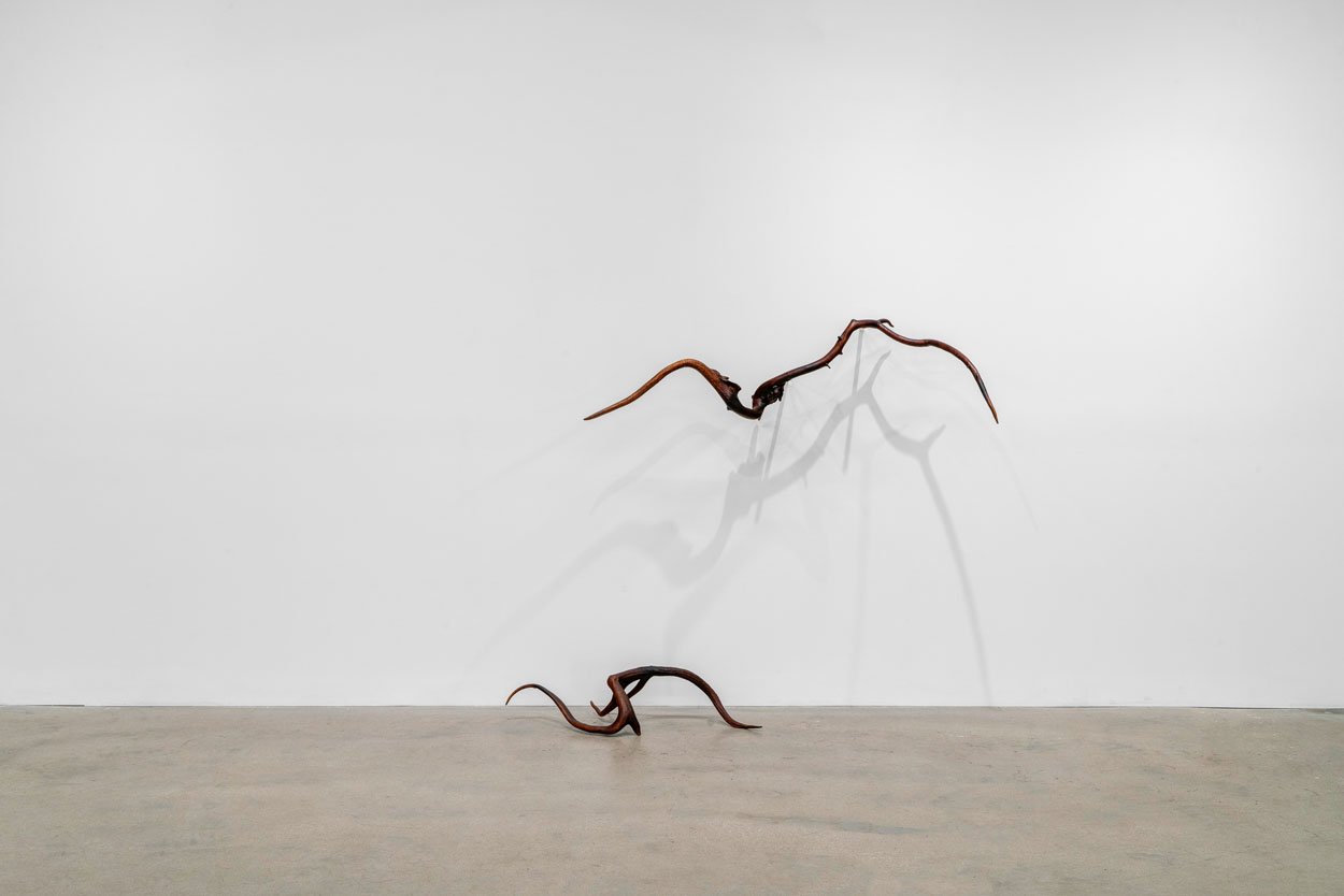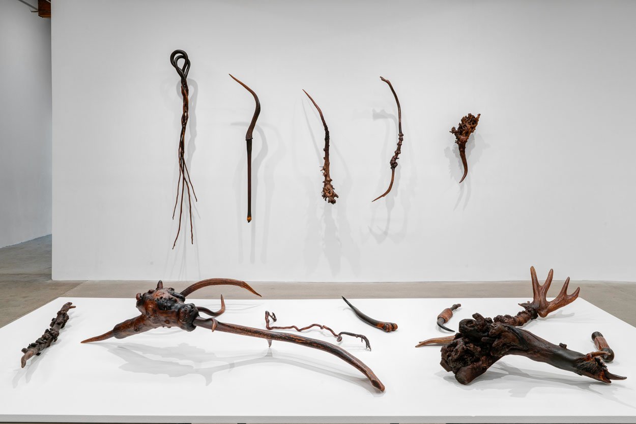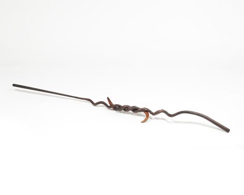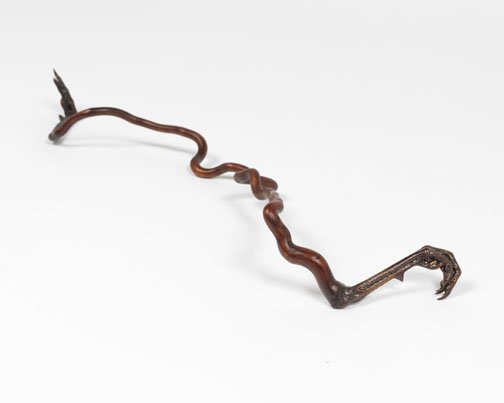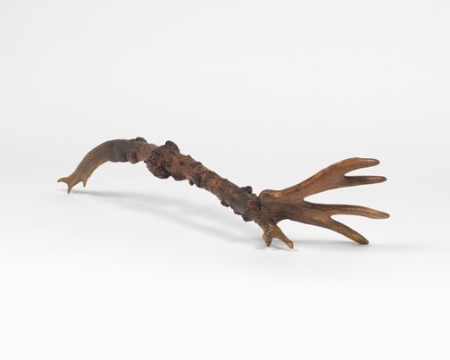 Corbett vs. Dempsey is pleased to unveil Objects From Elsewhere, an exhibition of recent sculptures by Richard Wetzel. In the North Gallery, Some of Its Parts (1966-1972) presents a selection of Wetzel's historical works. These complementary solo shows are the artist's first at the gallery. Richard Wetzel has been a quiet force on the Chicago art scene since the early 1960s. Just out of high school, an intermittent student at the School of the Art Institute, in 1962, Wetzel founded Sedgwick Street Gallery, where he gave himself and his future Imagist colleagues Karl Wirsum and Ed Paschke their first one-man shows. Wetzel was a member of the Nonplussed Some, the second Imagist exhibition group to show at the Hyde Park Art Center (1968/69), and curator Don Baum included him in the legendary 1969 MCA Chicago show Don Baum Says: "Chicago Needs Famous Artists." A meticulous craftsman from the start, Wetzel's early work moved from collage through various methods of printmaking to painting, and since the late 1980s he has been working on sculptural objects in a variety of materials. Objects From Elsewhere presents a selection of Wetzel's recent sculptures. This is the first solo exhibition of his new work since his 2007 show at O.K. Harris in New York. Consisting of hybrids of diverse things – antlers, bones, teeth, goose feet, and myriad tree parts – each of these newly invented objects has an unmistakably unique identity. Some manifest a surreal or science fictional beastliness that can be gentle or threatening or somewhere in between. Others seem more like obscure tools for unknown, possibly unsavory, tasks. Wetzel's surfaces are always carefully considered, and here they are matte and natural, the brown tones of the disparate materials blending together seamlessly into a congruent whole. As constructed as they are, the sculptures' makeup seems inevitable, like they couldn't have existed any other way. Chunky floor dwellers or slinky wall climbers, each named quite simply and precisely for their length, these objects are totems of another world, reliquaries of an imagined future or clandestine past. As a historical counterpoint to Wetzel's new work, Some of Its Parts (1966-1972) culls key historical items from the Nonplussed Some era, featuring works that were hung in both the HPAC shows, as well as "Fragments From The Wittenberg Hours," which the artist contributed to Don Baum Says: "Chicago Needs Famous Artists." At the time, Wetzel made complex etchings and serigraphs using photographic images, some of which were exhibited in the first Nonplussed Some show, and he innovated a technique that combined back-painted Plexiglas (common to a number of Imagist artists) with ink transfer, allowing him to directly apply, layer, and distort photographic images. Subject matter in these rarely seen works refers to mystical or apocalyptic scenes, frequently invoking mortality and rites of passage, reveling in unexpected juxtaposition of images. This is the largest round up of vintage works by Wetzel, arguably the least understood of the artists associated with the initial years of Chicago Imagism.