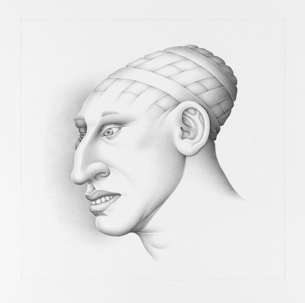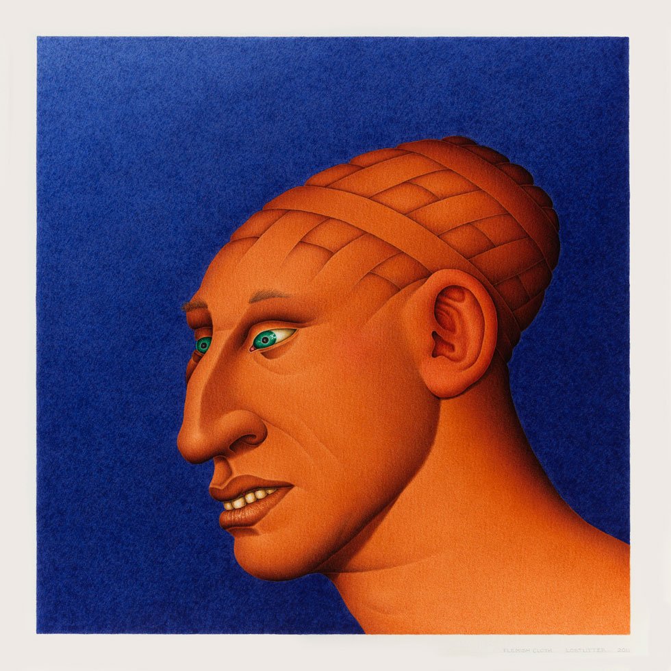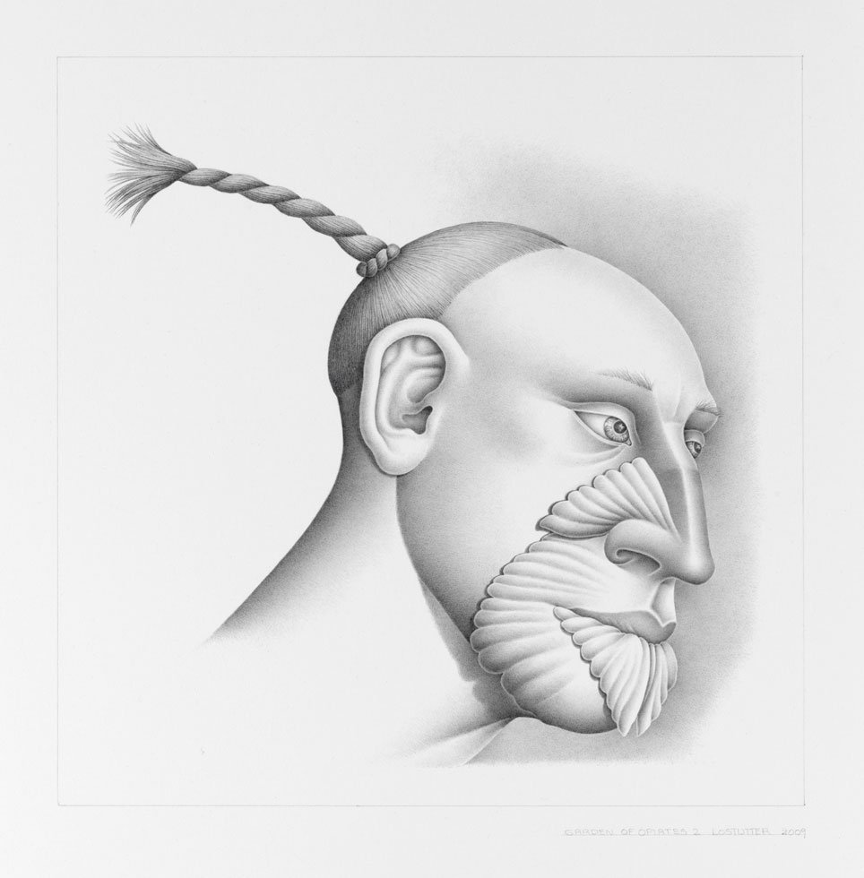 In his second exhibition at Corbett vs. Dempsey, Lostutter will unveil a suite of luscious new watercolors, as strange and particular as anything he’s accomplished to date. These bright, jewel-like works are all portraits of men, each one sporting some feature – a bald head woven in strips; a lower lip morphing into an orchid; face tinted blue; green hair tied up in a special braid – like an unknown, fantastic tribe of indigenous Central Americans. Some of them have slightly crossed eyes, recalling John Graham’s ladies, and these fellows are just as beguiling, a potent mix of psychedelia and Northern Renaissance. The watercolors are complemented by diabolically sensitive graphite drawings, featuring the same figures. Lostutter has been one of the most visible artists in Chicago since emerging on the scene the late 1960s.