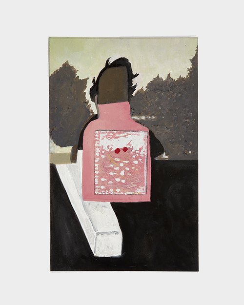 I made mock ups—many trial collages from these photographic images before settling on one, then painting the image using watercolors on paper. All works are intimate, postcard or paperback book sized, appealing to analogue senses while being informed by technology and the internet.