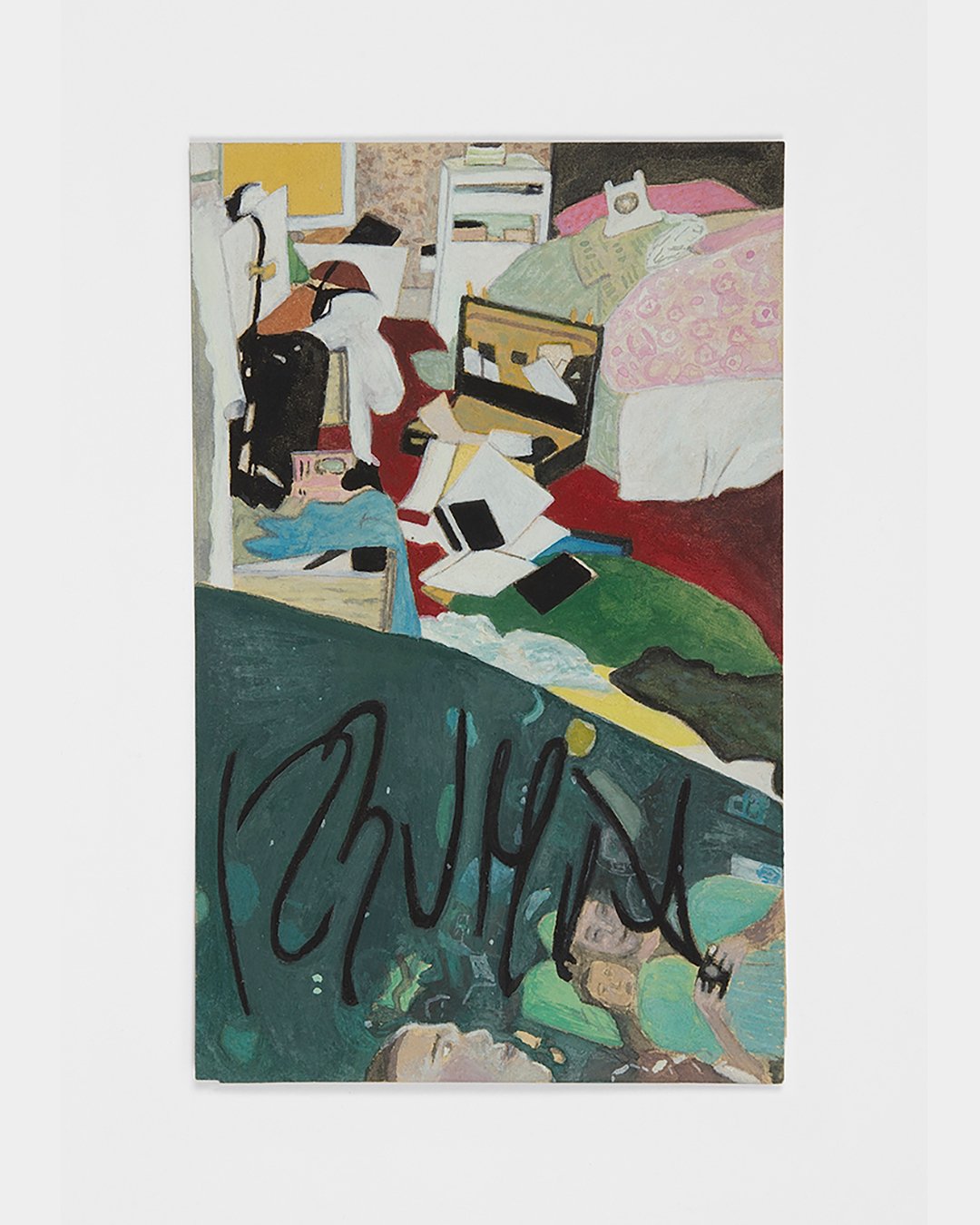 All images and all art contains a subconscious space—and you can always inuit it and feel it and interpret it. But what I’m doing is bringing that concept to the surface—visually. The words which prompted each painting disappear into the work but they do also persist in some way—wordlessly, the ghost of them remains legible.