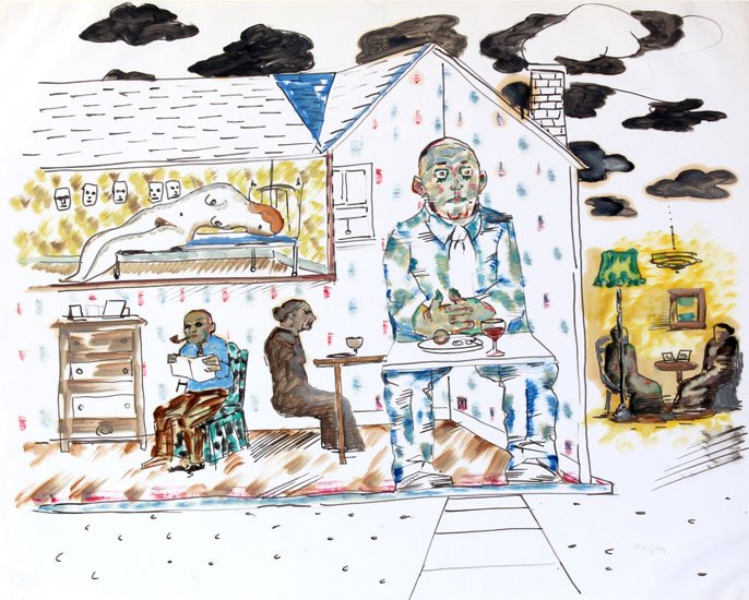 Rosofsky (1924-1981) is one of the key figures in twentieth century Chicago art. Emerging in the late 1940s as part of the movement later dubbed the “Monster Roster,” alongside Leon Golub, Nancy Spero, June Leaf, and Dominick Di Meo, he initially painted grotesque, existentially angst-ridden figures, perfect little monsters. By the early 1960s, Rosofsky had begun to develop a singularly fantastical style rooted in observational painting, creating unflinching masterworks like “Unemployment Agency” (which has hung in Mayor Rahm Emanuel’s office) and “Homage to Spain, Thalydomide Children, Others” (in the collection of the Art Institute of Chicago). Rosofsky’s brilliance as a painter is widely recognized, but he was also a spectacular draughtsman with a particular interest in drawing as both a process and a medium. Xylophone Solo spotlights fifteen great drawings – pencil, watercolor, pastel, charcoal – from the Rosofsky archives, some closely related to paintings, some imagined and executed entirely on their own. The exhibition is accompanied by a 44-page catalog with reproductions of all these and more Rosofsky works on paper.