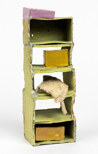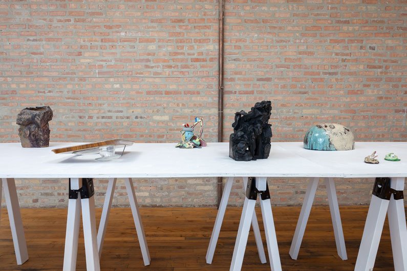 Across the surfaces of two enormous tables, spread out like pieces from an eclectic chessboard, artworks emanating from many different points of origin come head to head in this show, a rare group exhibition for CvsD which draws its inspiration from the gallery’s longstanding fascination with intimate-scale sculptural objects. The recent renaissance in ceramics is bountifully represented with exemplary historical sculptures by Bay Area “funk” figures Robert Arneson, Robert Hudson, and Gary Molitor, and contemporary works by Margot Bergman, Kathy Butterly, Alex Bradley Cohen, Elizabeth Ferry, Stanya Kahn, Ellen Lanyon, Andrew Lord, William J. O’Brien, Joakim Ojanen, Thomas Schütte, Arlene Shechet, Cauleen Smith, and Jimmy Wright. Confounding category, Richard Artschwager created the classic Formica piece “Table with Pink Tablecloth” in 1964, now part of the Art Institute of Chicago’s collection; decades later he made a scaled-down version in a tiny edition, a prototype of which is part of Small Sculpture. Like Artschwager’s piece, the eerie presence that emanates from these objects is a conceptual thread weaving throughout the show, linking uncanny works from David Adamo, Carol Bove, Peter Brötzmann, Alex Chitty, Thomas Grünfeld, Robert Guillot, Rachel Harrison, Carol Jackson, Mike Kelley, Josiah McElheny, Joshua Mosley, B. Ingrid Olson, Joyce Pensato, Pope.L, Betsy Odom, Matthew Ronay, Dieter Roth, Alan Shields, Richard Wentworth, William Weege, and Christopher Wool. Joe Brainard, Matias Faldbakken, and John Sparagana manipulate found material. Jeremy Anderson, Ted Halkin, David Hartt, Katsuhito Nishikawa, Diane Simpson, and Steven Urry all deal with architectural and/or minimal construction. The many dimensions of Chicago’s own sometimes surreal milieu are explosively represented in sculptures by Don Baum, Dominick Di Meo, Robert Donley, Ed Flood, Philip Hanson, Thomas H. Kapsalis, Rodney Quiriconi, H.C. Westermann, and Karl Wirsum.