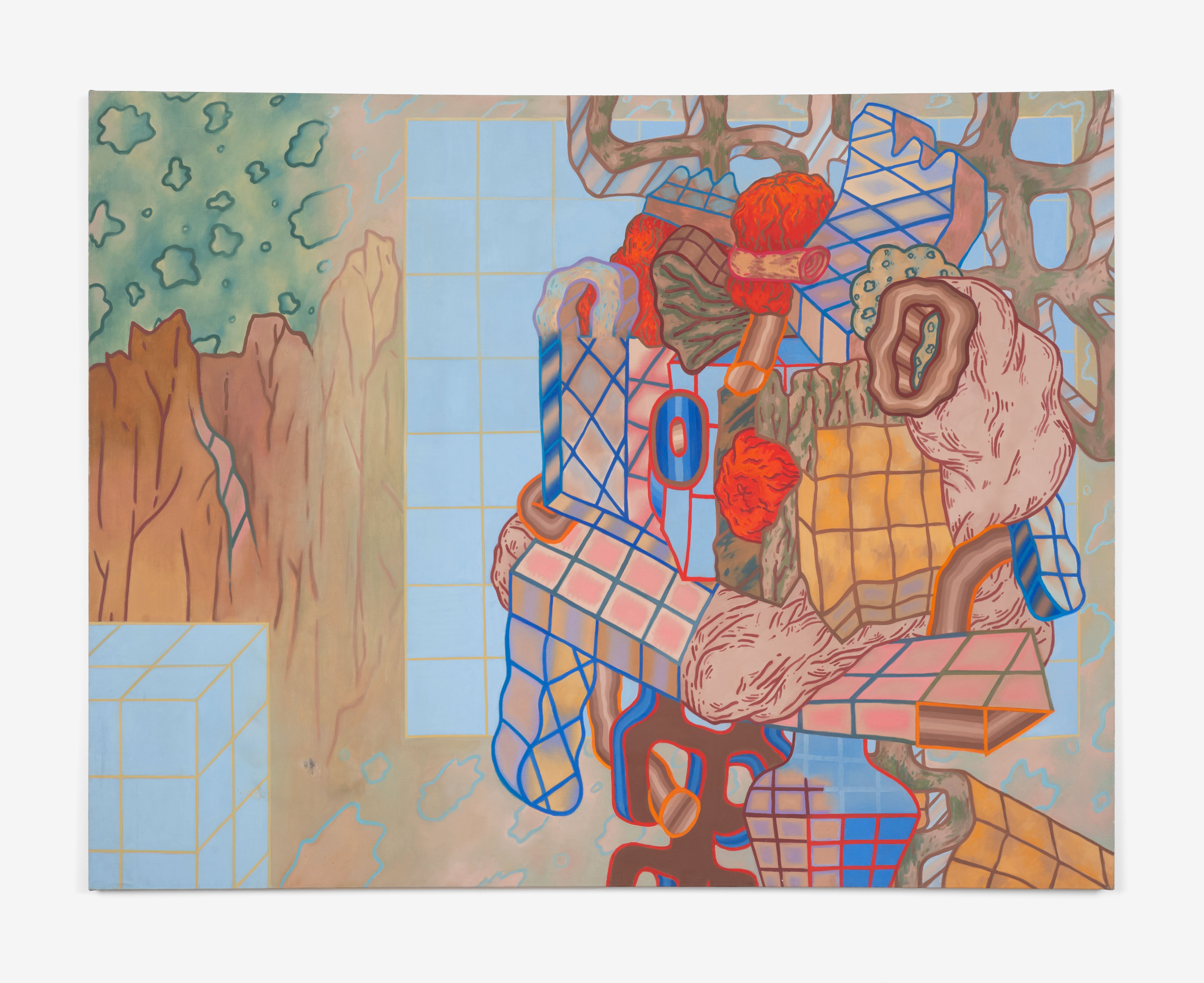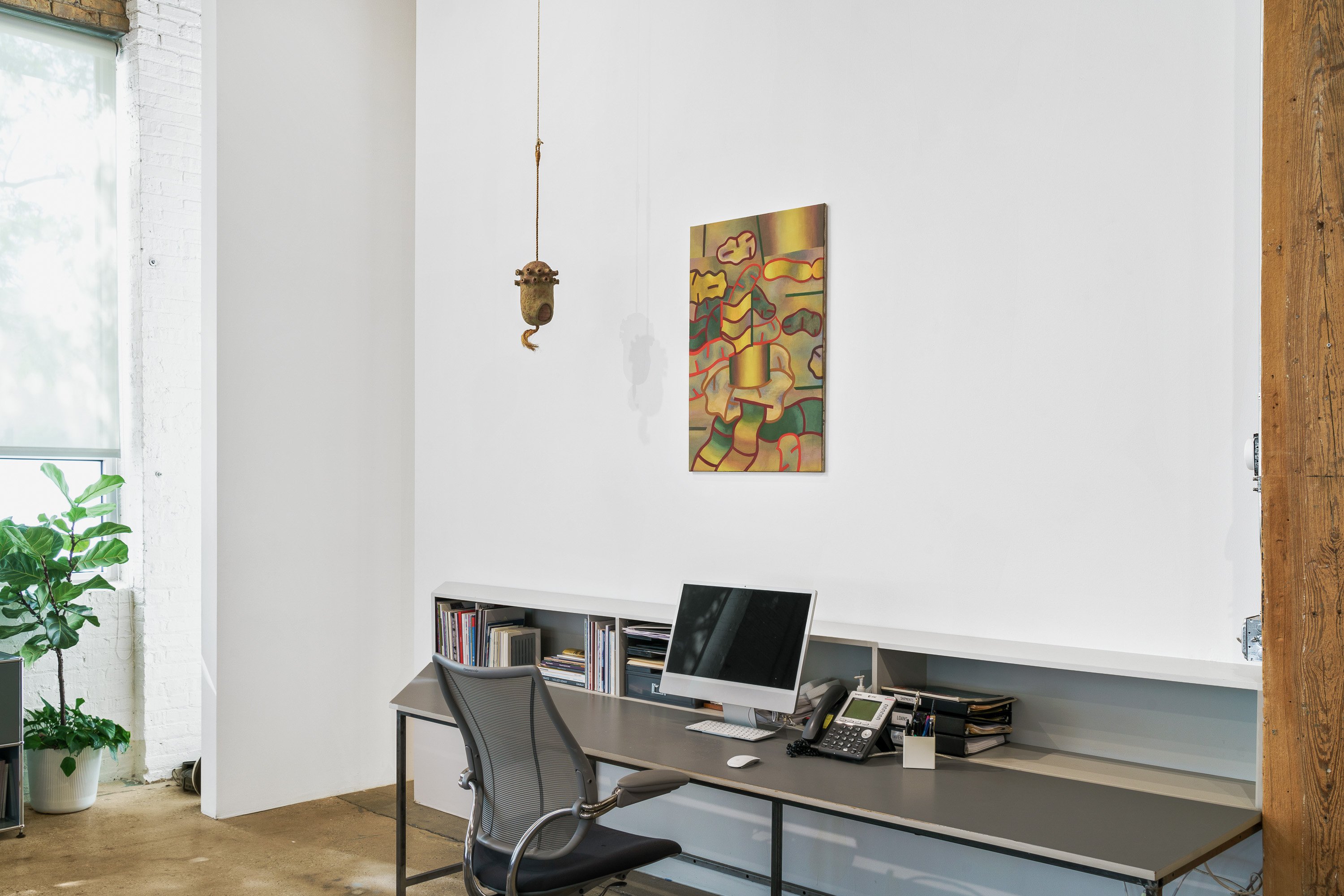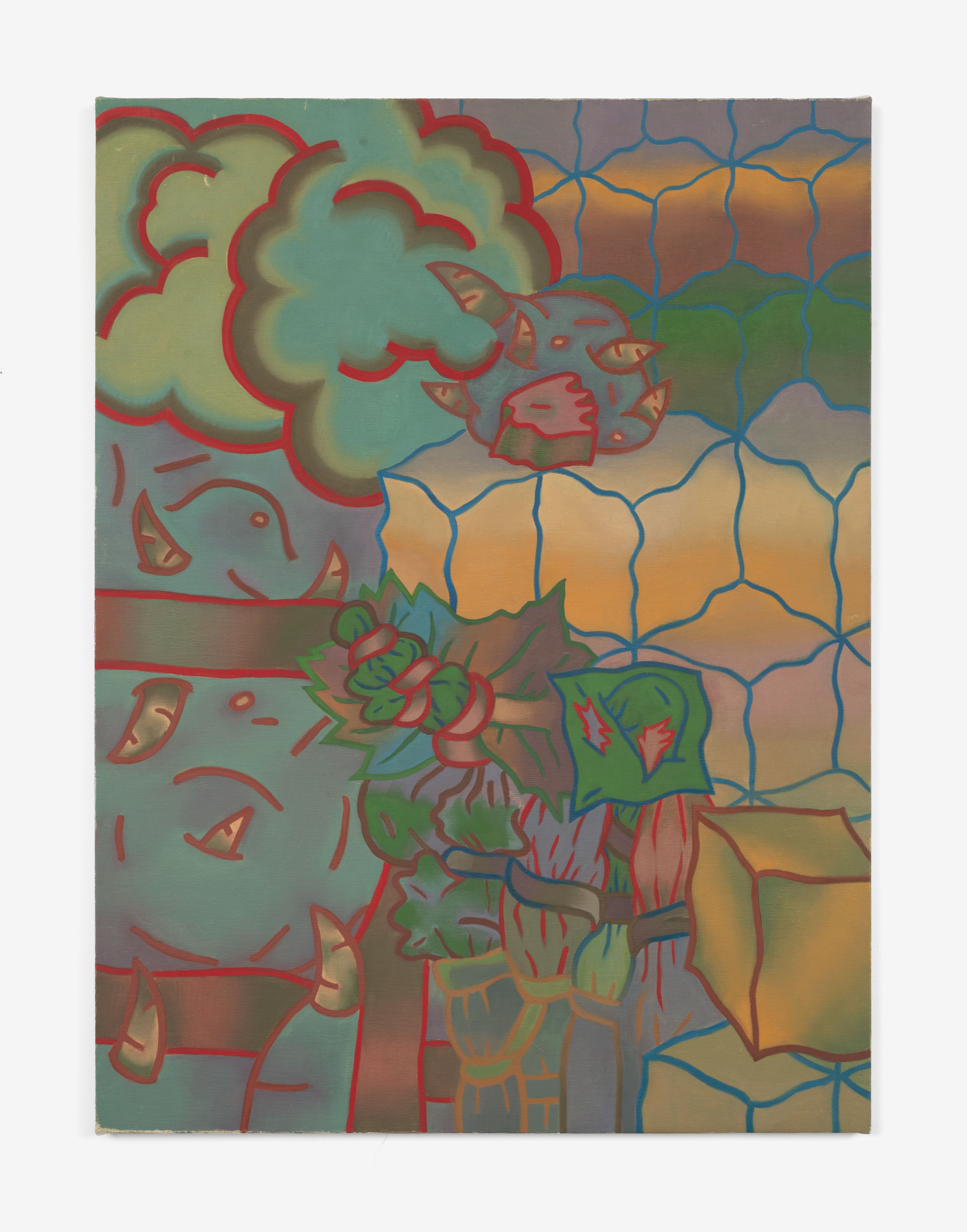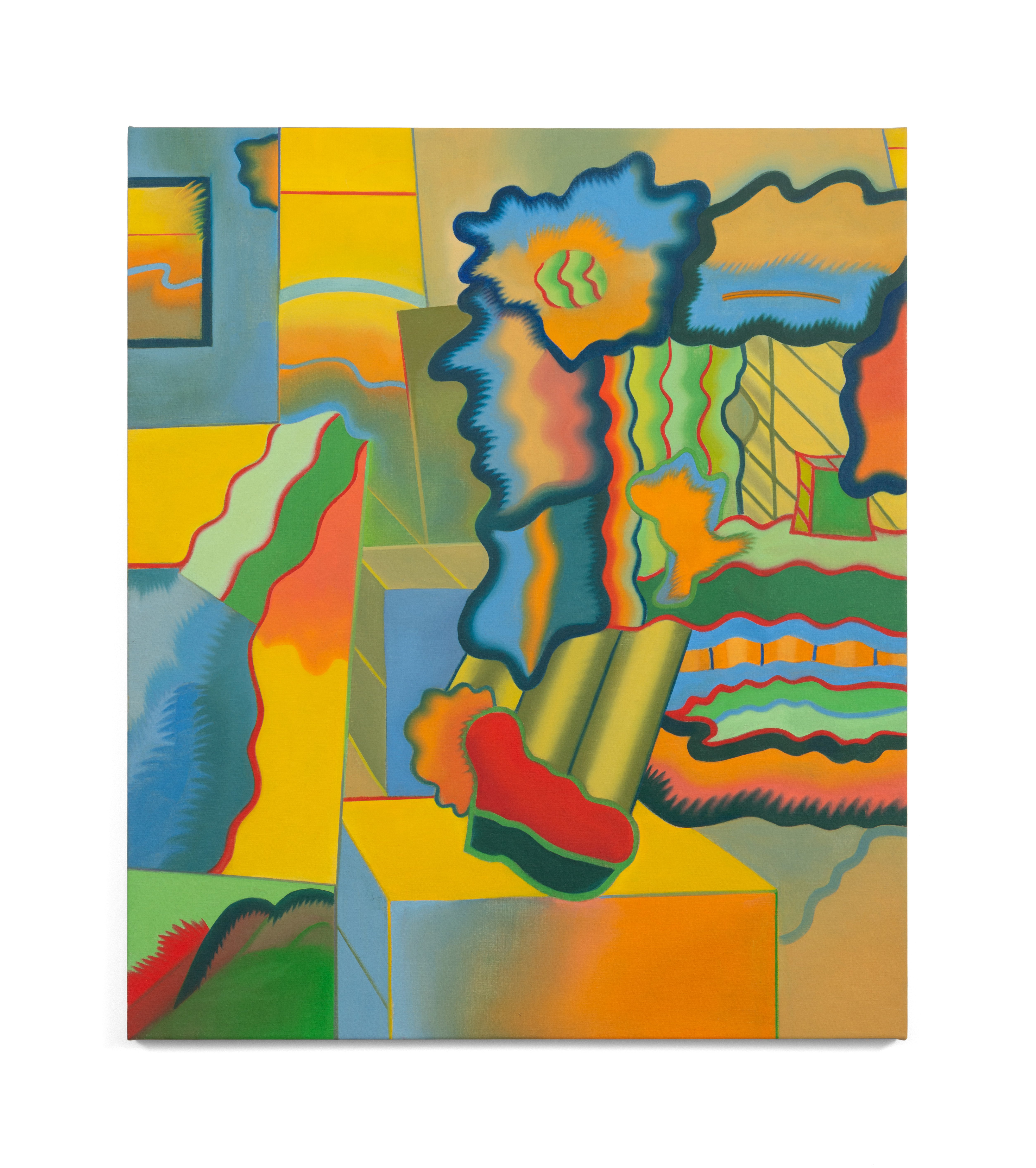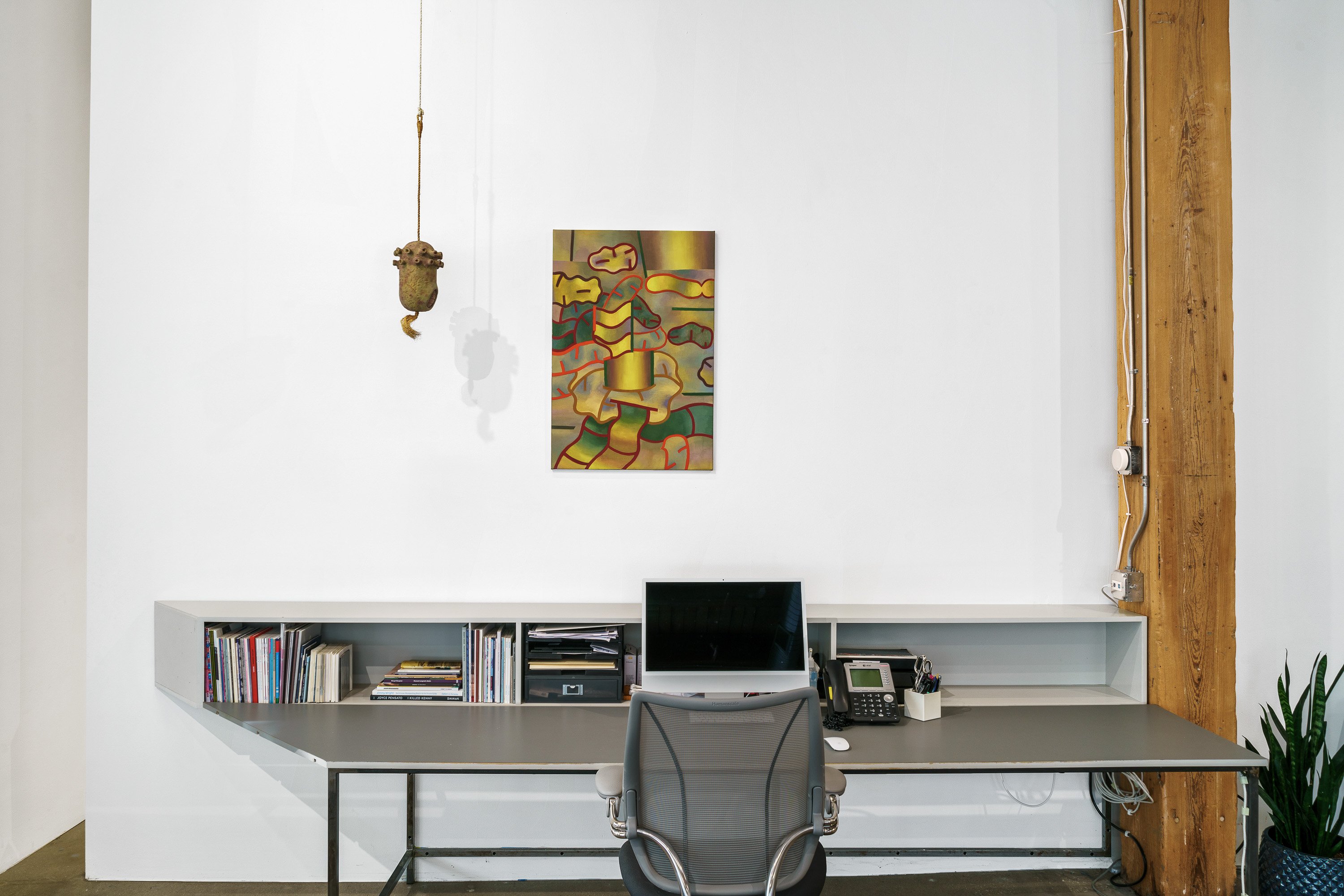 Ted Halkin (1924-2020) was a central figure in Chicago's art scene for more than half a century. Emerging in the postwar period as one of the original members of the so-called Monster Roster, alongside Leon Golub, Dominick Di Meo, George Cohen, and Evelyn Statsinger, Halkin exhibited with Alan Frumkin Gallery in New York and Phyllis Kind Gallery in Chicago. He made paintings with low-relief elements and whimsical figures in earthen tones as well as biomorphic papier-mâché sculptures with orifices and knotted forms, sometimes featuring found furniture parts. In the mid-1960s, Halkin's work took a rather abrupt turn. The forms continued to be complex, biomorphic, and highly abstract, but the colors and overall composition shifted dramatically, moving into a bright, saturated palette and an open-ended, spatially labyrinthine compositional concept quite different from the earlier scenarios. Halkin's initial advances in this direction came in the form of the sculptures and their associated drawings, followed by a series of incredible canvases and works on paper made between 1967 and 1970, which have certain features in common with well-known Chicago Imagist artists – one might find similarities with Jim Nutt and Karl Wirsum works from the same period – but always much more abstractly composed. Some of these works were exhibited at the time, but a large group of them remained unshown by the time Halkin moved to a new house in Evanston in 1970. There the paintings were rolled and safely stored in the basement, where they stayed until 2023, when, in preparation for the exhibition Four Chicago Artists: Ted Halkin, Evelyn Statsinger, Barbara Rossi, and Christina Ramberg (which opened at the Art Institute of Chicago on May 11), they were rediscovered. Brilliant and as immaculate as the day they were painted, these paintings parallel the drawings in the AIC, their formal puzzles, glancing allusions to representation, and shivering color vibrations demonstrating how Halkin's creativity was in overdrive at the time. This exhibition presents a selection of these newly uncovered paintings and several important precursor sculptures, also unearthed in the artist's studio dwelling.