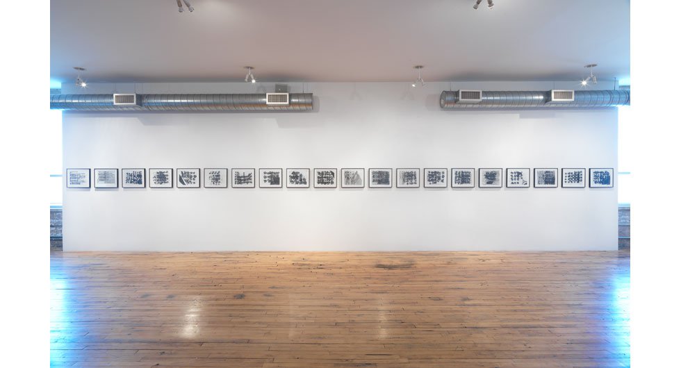 The idea for the show evolved out of a few years of conversations between Winters, John Corbett and Jim Dempsey, initially concerning the relationship between visual art and music, eventually narrowing to that between drawing and improvisation. These discussions, coupled with studio visits looking at Winters’ incredible works on paper, lead to the notion of a catalog with an associated exhibition. The drawings chosen for the show cover a period from 2006 to 2014, and they range from small scale, heavily worked graphite drawings to quite large ones incorporating charcoal, ink, and gouache. One suite titled Difference Surface involves 20 related panels, each one juxtaposing pattern against pattern, creating augmentations and interferences, places where the broken symmetries are pushed into a new and wondrous realm. Shimmering black surfaces, cellular forms and stretched nets, humming and buzzing lines – these drawings reach deep into the act of mark making and look for the exact place where traces of an action become images, the ghost zone where something potential but impossible is conjured.