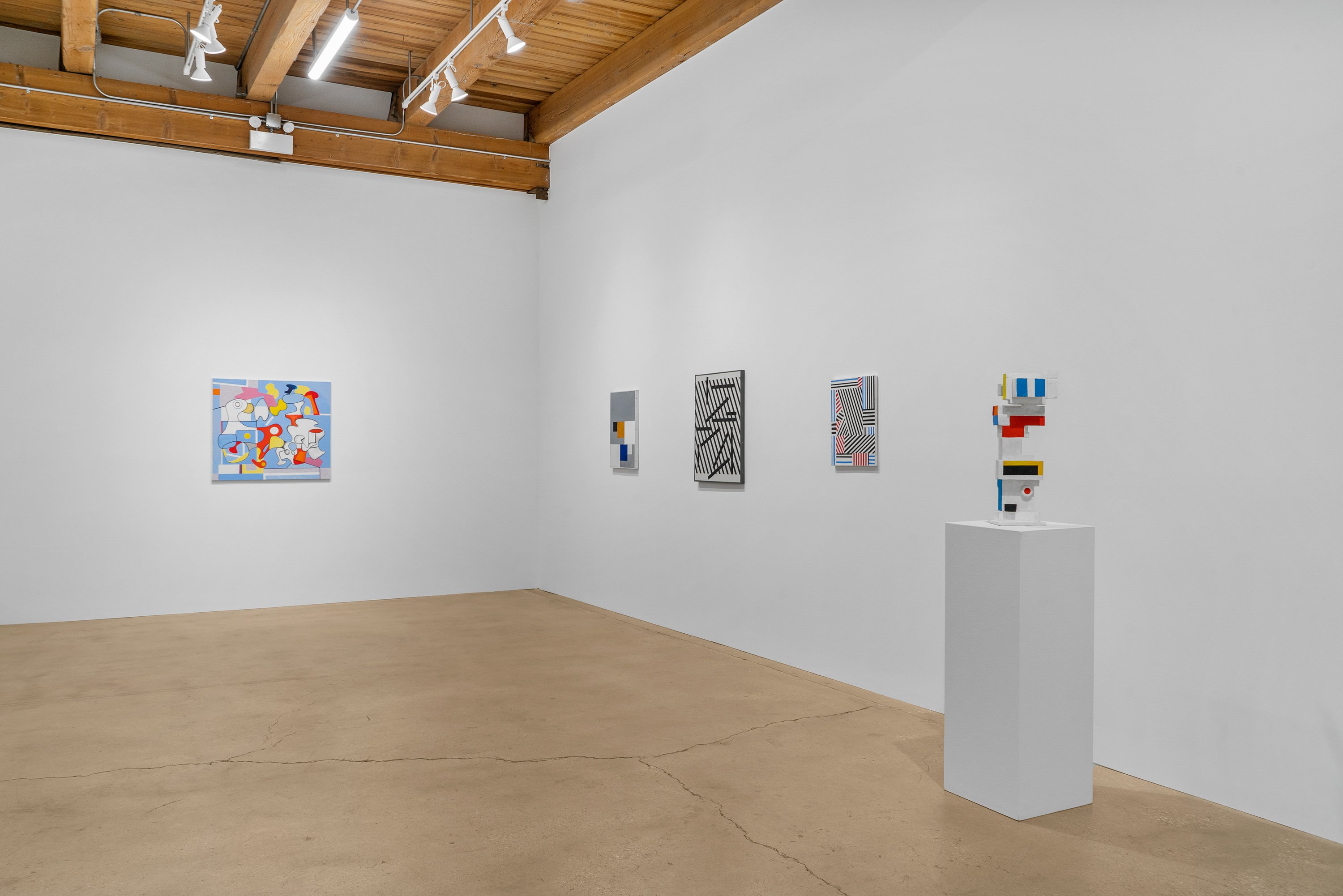 A graduate of the School of the Art Institute of Chicago (SAIC), where he went on to teach for more than 50 years, Thomas H. Kapsalis (1925-2022) was one of the most beloved figures in the history of Chicago art. The combined Kapsalis class rosters are a panorama of Chicago artists, including a who’s who of the Hairy Who. In his work, Kapsalis remained committed to a modernist concept, albeit one inflected by his unique combination of formalism and humor. A decorated WWII veteran and prisoner of war from the Battle of the Bulge, Kapsalis responded to the U.S. involvement in Vietnam by removing color from his work. Nine Decades presents a survey of the artist’s career encapsulated in nine works, each drawn from a different decade of his painting and sculpting, starting with a small, black-and-white totemic abstraction from 1949, and ranging through brilliant, biomorphic canvases of the ‘50s and ‘60s, including “Danger Ahead” (1959), an abstract work with a face in it (hence: danger, a head). His 1971 painting “Three Cubes” comes from the black, white, and gray Vietnam period; the works on view from the 1980s, ‘90s, ‘00s, and ‘10s, demonstrate the artist’s persistent engagement with geometric abstraction and periodic revisitation of organic, sinuous forms. A work from the present decade demonstrates Kapsalis’ steadfastness in his studio practice, even as he headed into his late nineties. Few artists have the longevity and tenacity to allow such a sampling. Kapsalis was rare in many ways, as an artist, and as an uncommonly inspiring teacher. Parallel to this exhibition, David Salkin Creative will show some of the delightful handmade teaching materials that Kapsalis crafted for his courses at SAIC, including color chart paintings that were also his sly way of reintroducing color into his work as the U.S. began to pull out of Vietnam.