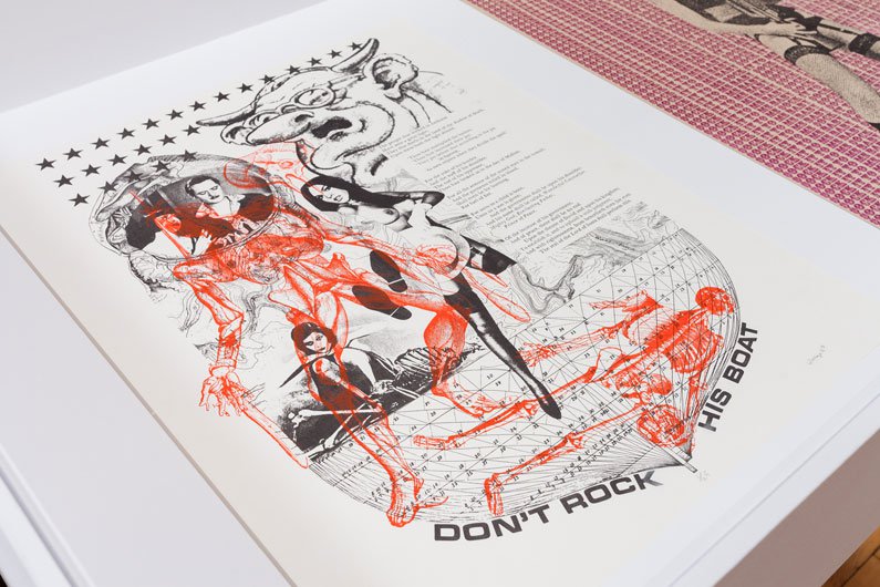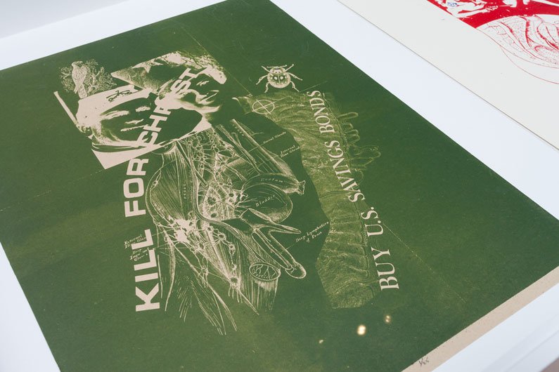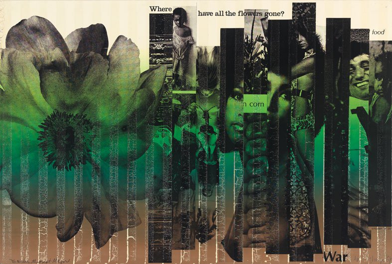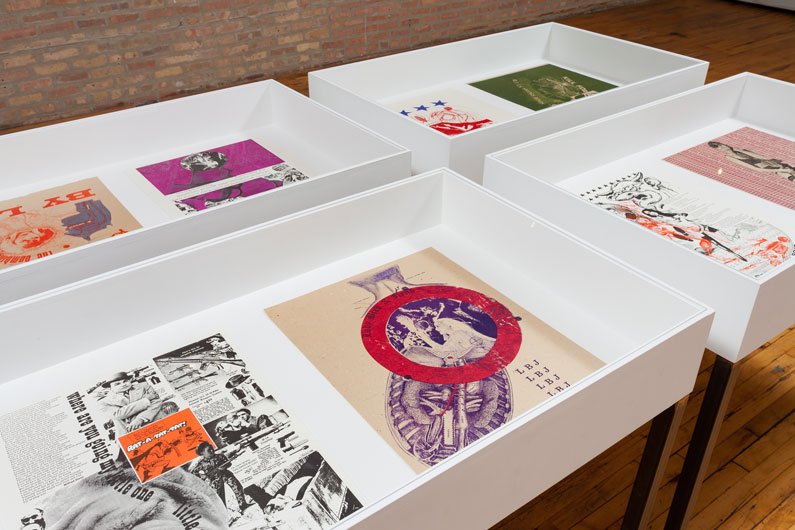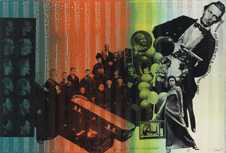 William Weege (b. 1935) is a legendary figure in American printmaking. He taught at University of Wisconsin, Madison, from 1971 to 1998, during which time he founded the Jones Road Print Shop and Stable of Barneveld, Wisconsin, where he collaborated with many important artists, most extensively Alan Shields and Sam Gilliam (the latter of whom he continues to work with today); in 1987, Weege went on to found Tandem Press. Weege was responsible for bringing photographic methods into printmaking at UW, and at the time starting in the mid-’60s he was very active making collage-based prints, most of them of a bold and provocative political nature, often using highly experimental means. The best known of these was a 25-piece portfolio titled Peace is Patriotic , from 1967, which utilized a range of different papers and combinations of serigraphy and offset printing. At the time, eight images from the portfolio were licensed by a poster company, which ultimately disseminated them as posters to all corners of the American anti-war, underground, and counterculture; any good hippy household had one of them on its wall. Comprised of Dada-like collages, incorporating text and images from popular culture, some of it graphically sexual or violent or medical, the portfolio included one print titled “Impeach Johnson,” which Weege repurposed three years later, its text altered to read “Impeach Nixon,” when he participated in the Smithsonian’s “Experimental Printmaking Workshop” at the notorious 1970 Venice Biennale. Weege stood outside the American pavilion printing and handing out the piece. In the late ’60s, Weege’s work was shown frequently in Chicago, including solo shows at Richard Gray Gallery, where he had a solo exhibition during the 1968 Democratic National Convention, and a presentation of his enormous 16-panel work “Long Live Life” in the same year at the Museum of Contemporary Art. Weege’s political and social commentary printworks are bodacious and aggressive, deploying fluorescent colors and complex layers of photographic image – sometimes borrowed, sometimes shot – and involving unconventional techniques like flocking, glittering, and sewing. In this, the first substantial roundup of works from 1967-1971, CvsD will show the Peace is Patriotic portfolio, along with two large multi-panel works, and a selection of other ambitious prints from the period. In conjunction with the show, CvsD has produced a 124-page book exhaustively reproducing Weege’s social and political printworks up to 1978, as well as related collages and an illustrated conversation with the artist about the work.
