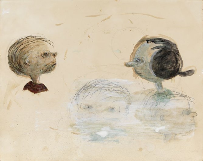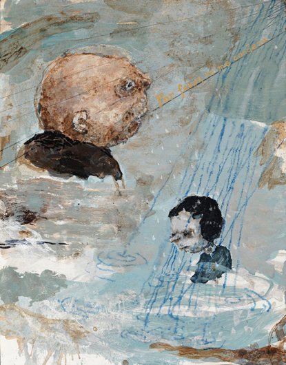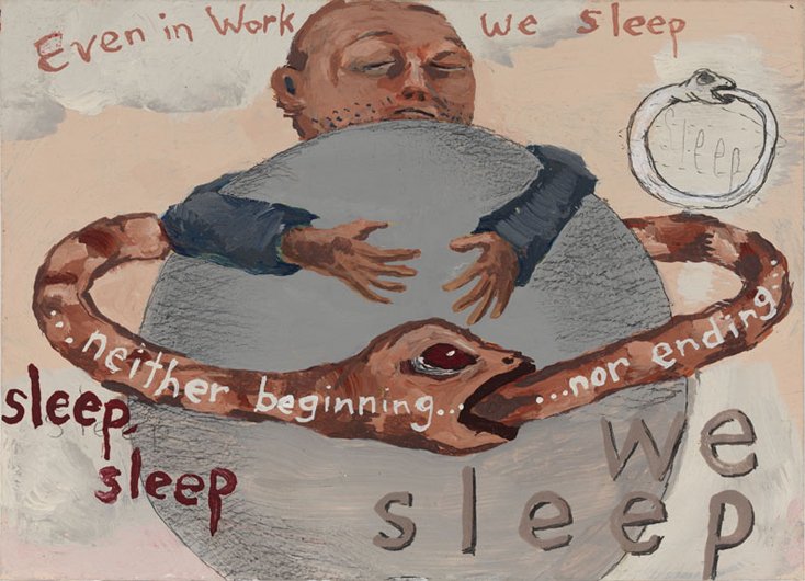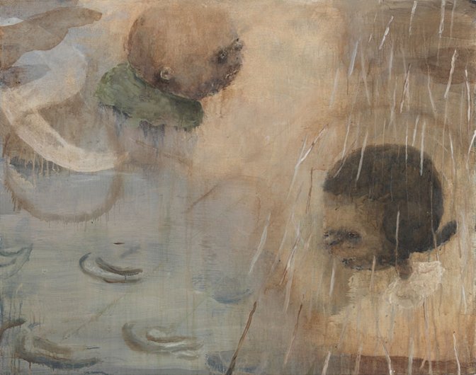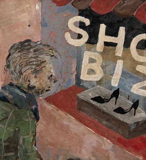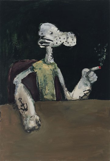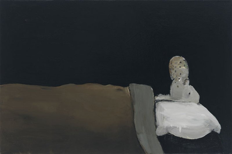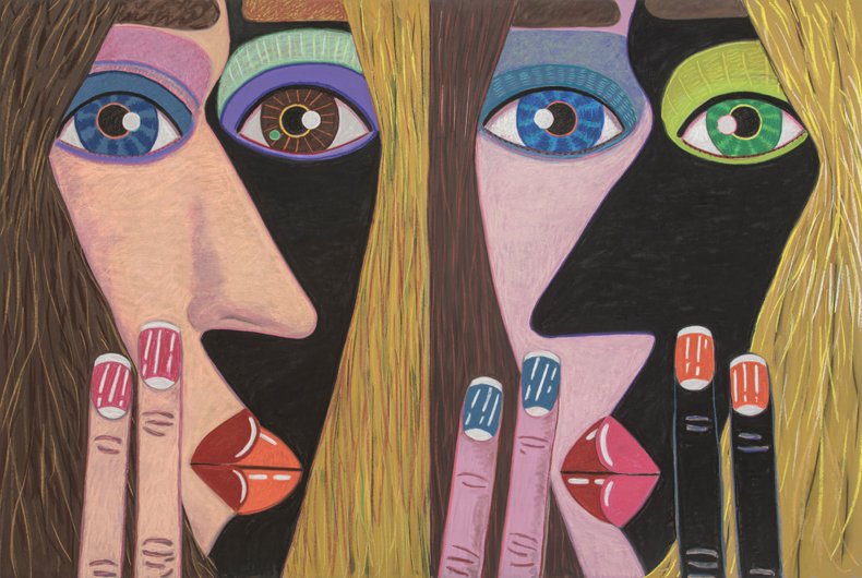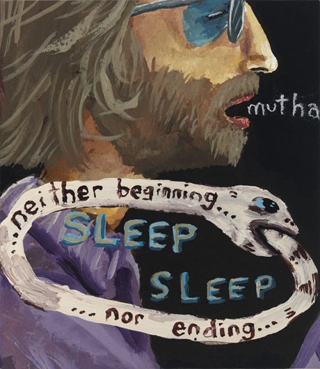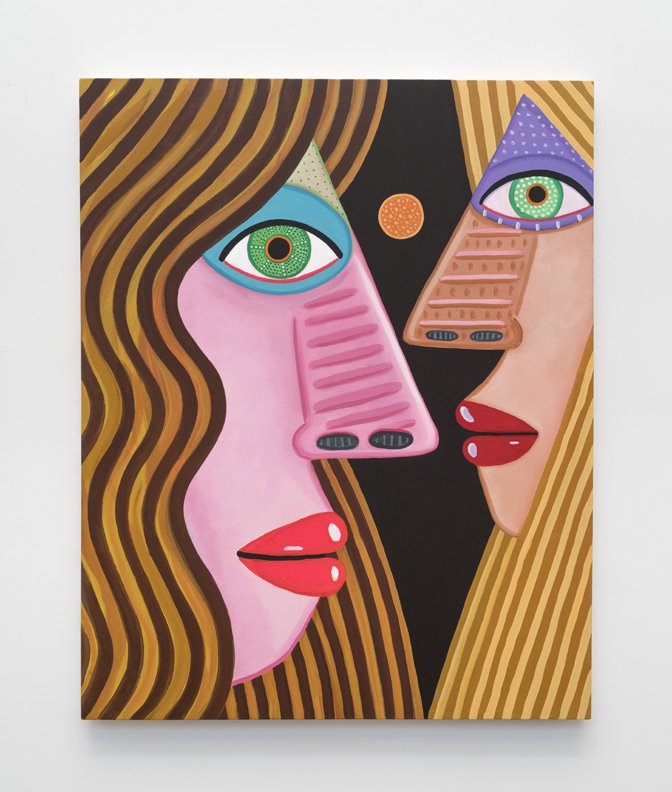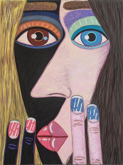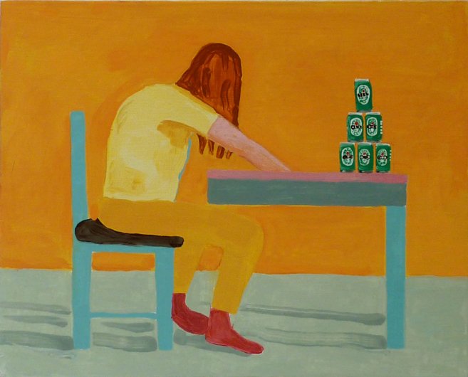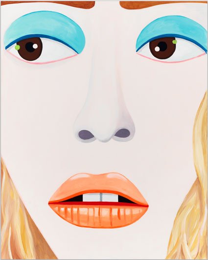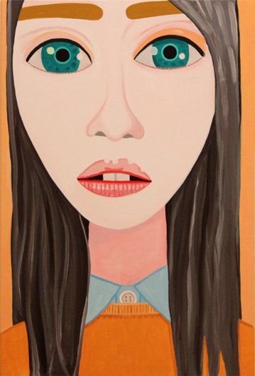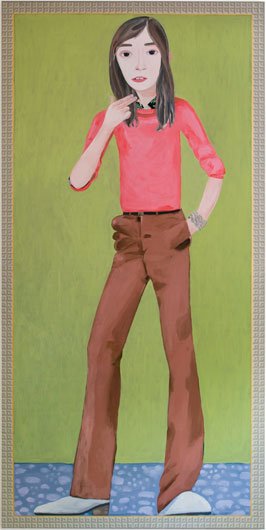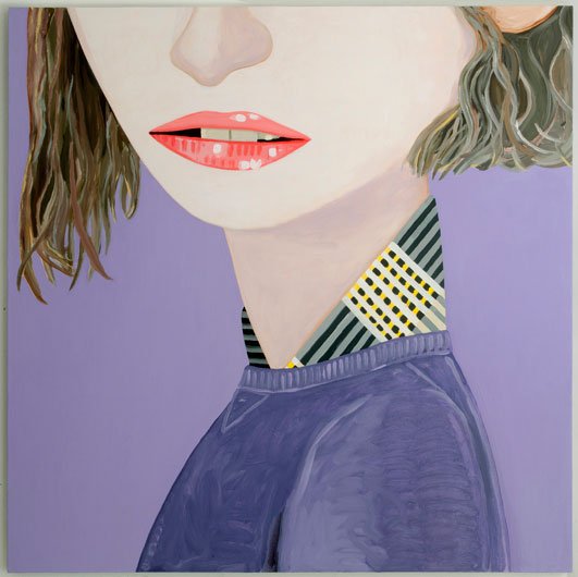 Calvin developed a figurative pictorial style with a close-up treatment of subjects, highly composed structures, and luminous colors lying flat. His technique is a type of abstraction in the representation of certain details. His portraits of bleary-eyed youth are painted featuring backgrounds that Calvin describes as “general” glimpses of the California coast.