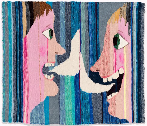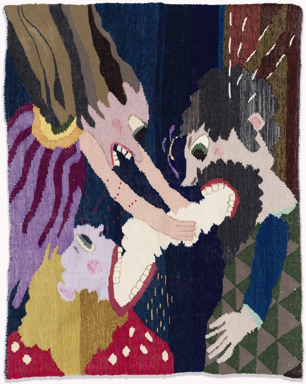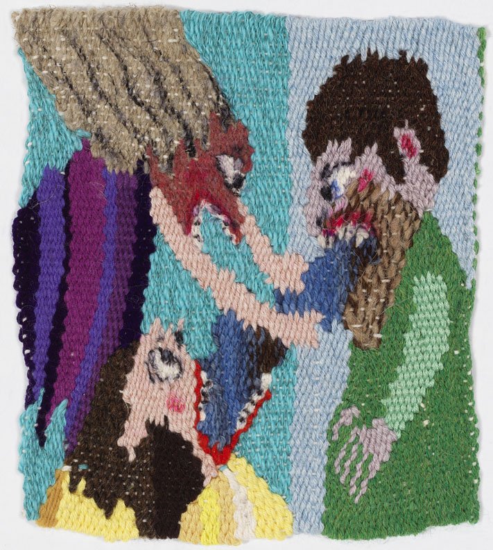 Born in Zürich, Switzerland, and based in Los Angeles, Forrer makes tapestries that are psychologically charged, but often by means of energetic interaction dynamics suspended in a fraught narrative. Brilliant, raucous, warm, and biting, they bring traditional Swiss textiles into a thoroughly contemporary comic context, inside jokes looming large in her brightly colored woven surfaces. Recent institutional exhibitions include Matrix 187 at the Wadsworth Atheneum, Hartford, CT (2021–2022), Christina Forrer: Feet of the Devil at Savannah College of Art and Design Museum of Art, Savannah, GA (2019–2020), Grappling Hold at the Swiss Institute, New York (2017) and Unorthodox at the Jewish Museum, New York (2015).