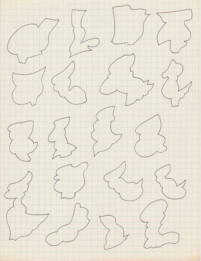 Untitled (silhouettes) n.d. pen on graph paper 11 x 8 1/2 inches