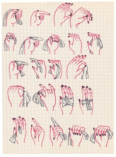Untitled (red hands with kerchief) n.d. felt-tip pen on graph paper 8 1/2 x 6 1/2 inches
