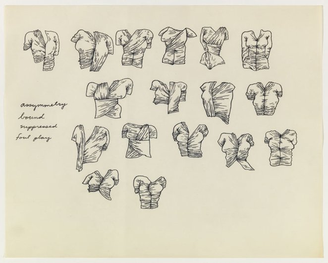 Untitled (wrapped torsos) c. 1967 felt-tip pen on paper 8 x 10 inches; framed