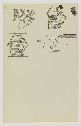 Untitled (clamped in place) c. 1970 ink and ballpoint pen on paper 6 x 4 inches
