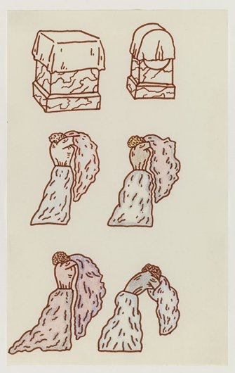 Untitled (curtain over image) c. 1968 felt-tip pen, marker, crayon, and colored pencil on paper 11 x 8 1/2 inches;framed