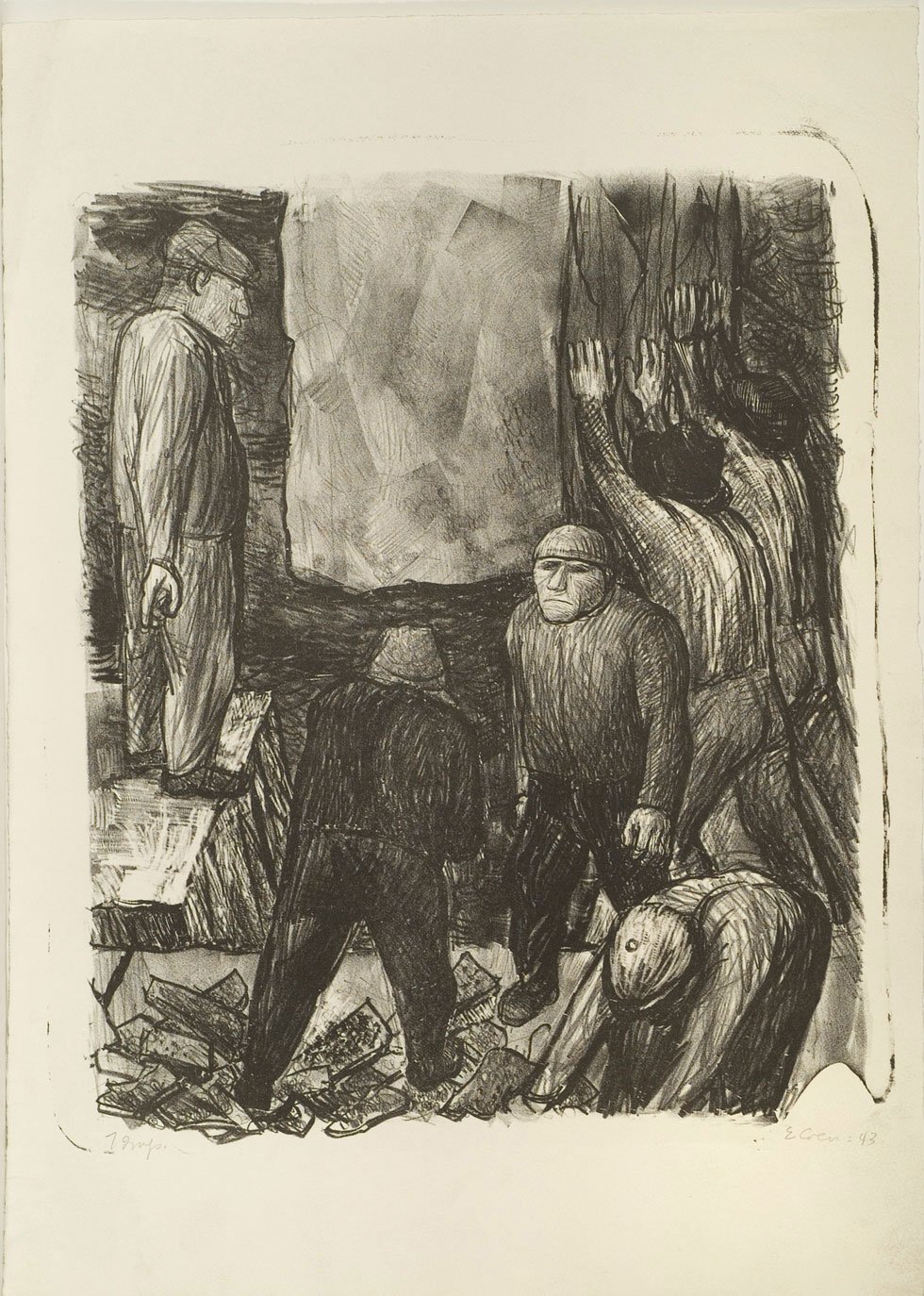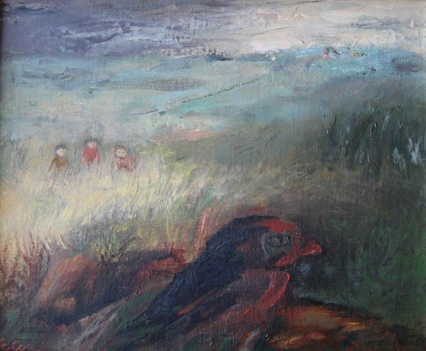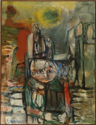 Born in Normal, Illinois, Eleanor Coen is a landscapist of urban and rural subjects with an expressionist style of swift brush strokes, heavy impasto, and intricate overlays of glowing color. Since the ’40s, she has been especially well known for her paintings and prints of children. She was a student and teacher at the School of the Art Institute of Chicago and studied painting there with Boris Anisfeld and lithography with Max Kahn, whom she married.