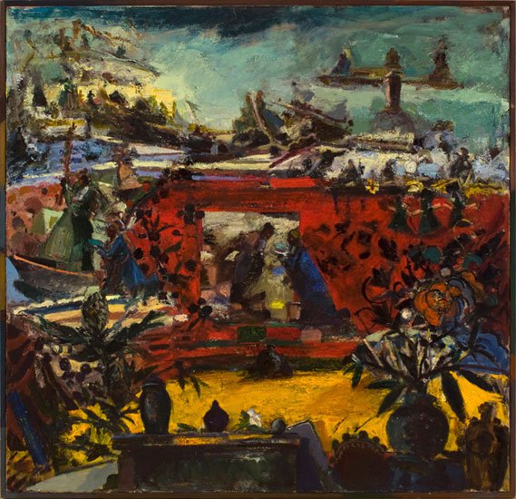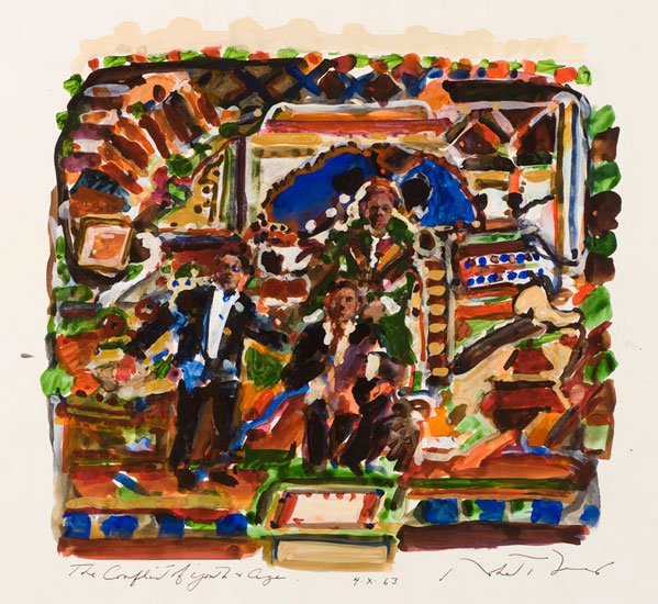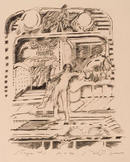 In 1961 Barnes was awarded both the William and Norma Copley Foundation Prize for Painting and a Fulbright Grant to study English portraiture, and so left to study at the Slade School of Art in London, where he would stay until 1963. Again, Barnes found himself in the company of an extraordinary community of artists, including Francis Bacon. Through Bacon’s involvement with the London Theatre, Barnes developed an interest in the theatrical arts, which would also pervade his paintings for decades to come.