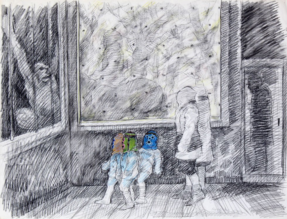 Seymour Rosofsky is one of the key figures in twentieth century Chicago art. Emerging in the late 1940s as part of the movement later dubbed the “Monster Roster,” alongside Leon Golub, Nancy Spero, June Leaf, and Dominick Di Meo, he initially painted grotesque, existentially angst-ridden figures, perfect little monsters. By the early 1960s, Rosofsky had begun to develop a singularly fantastical style rooted in observational painting, creating unflinching masterworks like “Unemployment Agency” (which has hung in Mayor Rahm Emanuel’s office) and “Homage to Spain, Thalydomide Children, Others” (in the collection of the Art Institute of Chicago). Rosofsky’s brilliance as a painter is widely recognized, but he was also a spectacular draughtsman with a particular interest in drawing as both a process and a medium.
